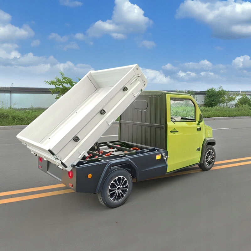 JONWAY KIPPER предлагает просторную кабину для двух человек с регулируемыми сиденьями, электростеклоподъемниками и современным 9-дюймовым мультимедийным экраном. В оснащение входят, среди прочего: центральный замок, камера заднего вида, ABS, светодиодное освещение и система предупреждения пешеходов на низкой скорости. Опрокидывающая платформа с ручным управлением позволяет быстро разгрузить груз в любом месте. Высокая полезная нагрузка при компактной конструкции означает, что вы можете перевезти больше грузов за меньшее время. Это идеальный выбор для компаний, ферм и муниципальных служб, которым нужен эффективный электромобиль.