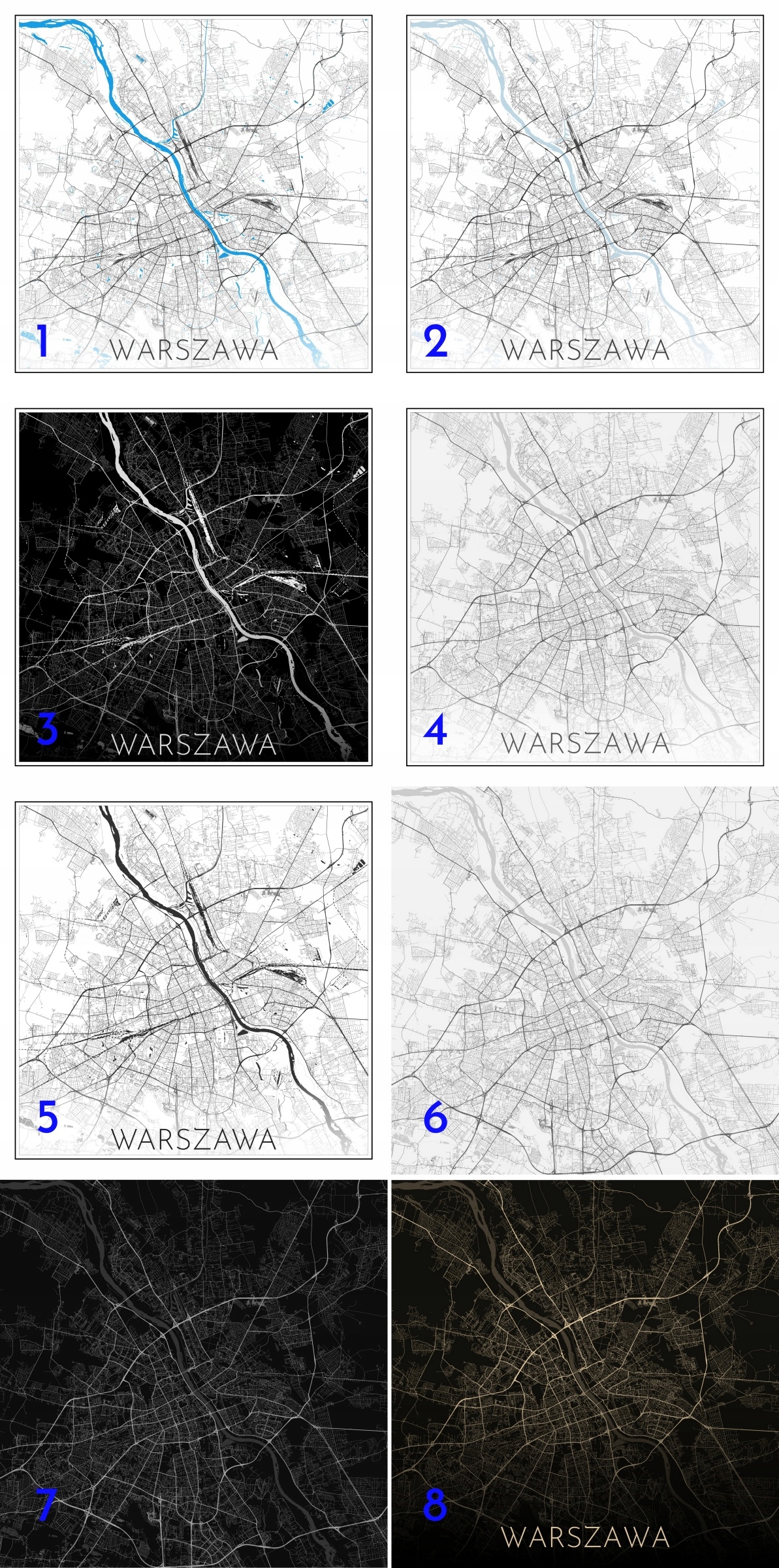 ВАРШАВА чорно-біла карта ЕЛЕГАНТНИЙ МІНІМАЛІЗМ план РІЗНІ ВЕРСІЇ 60х60
