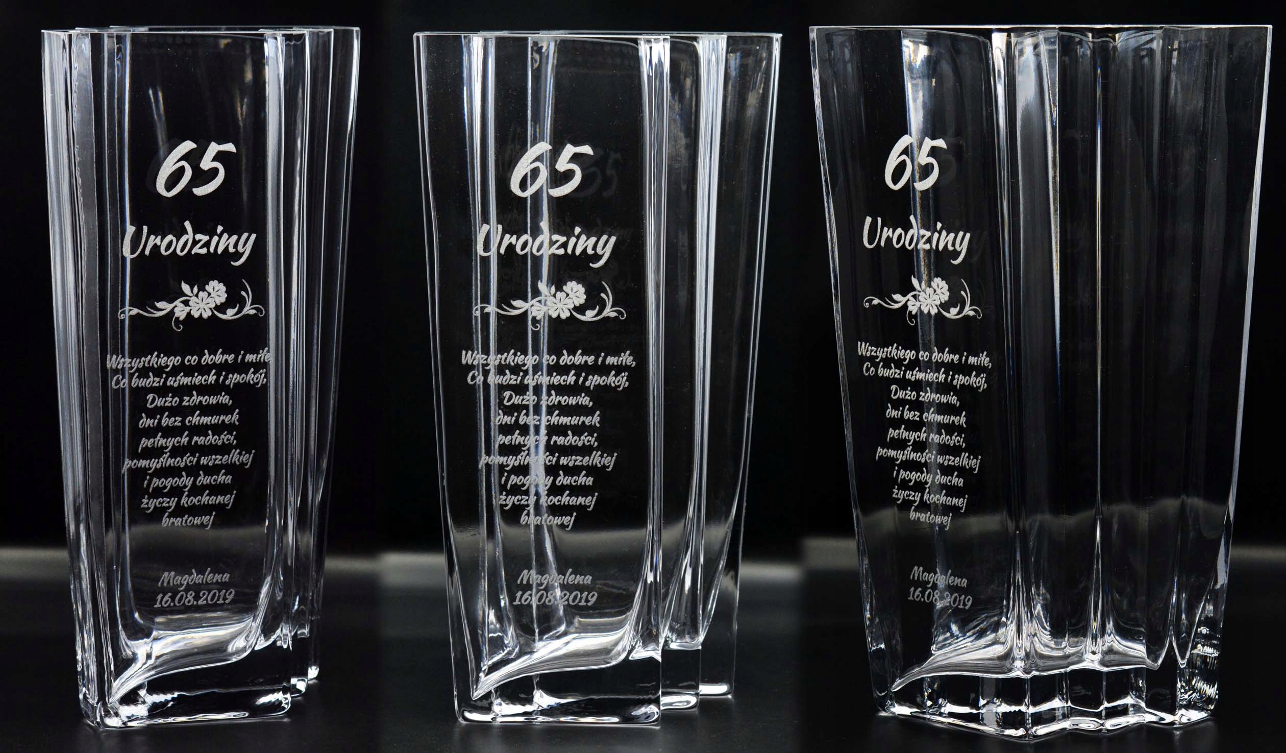 - содержание гравировки: на верху вазы: Кася и Анджей, июль 30 декабря 2019 г., внизу вазы: пожелания Кристине и Рафалу