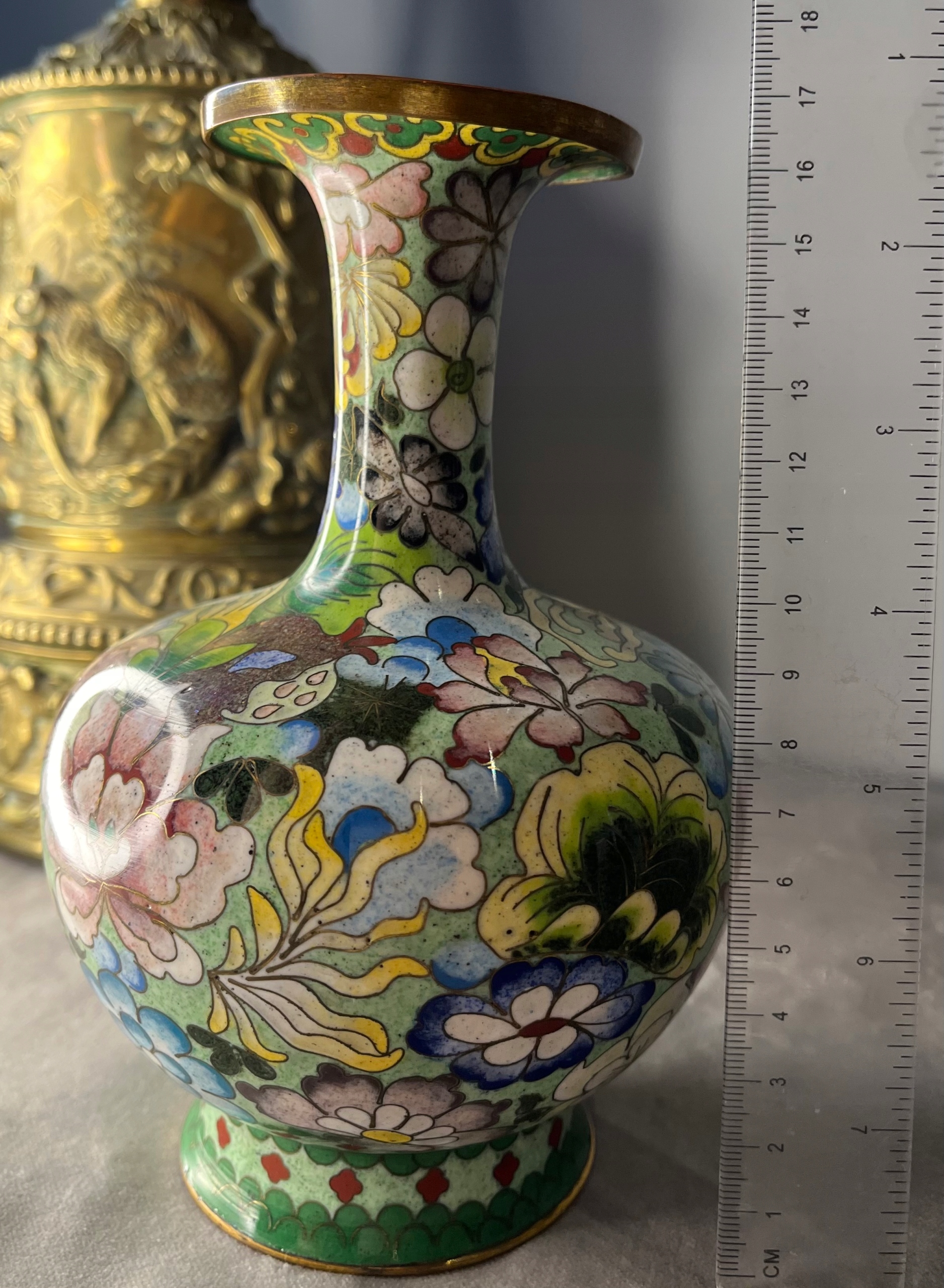 Ваза-пляшка перегородчаста, пориста емаль, стара, красива