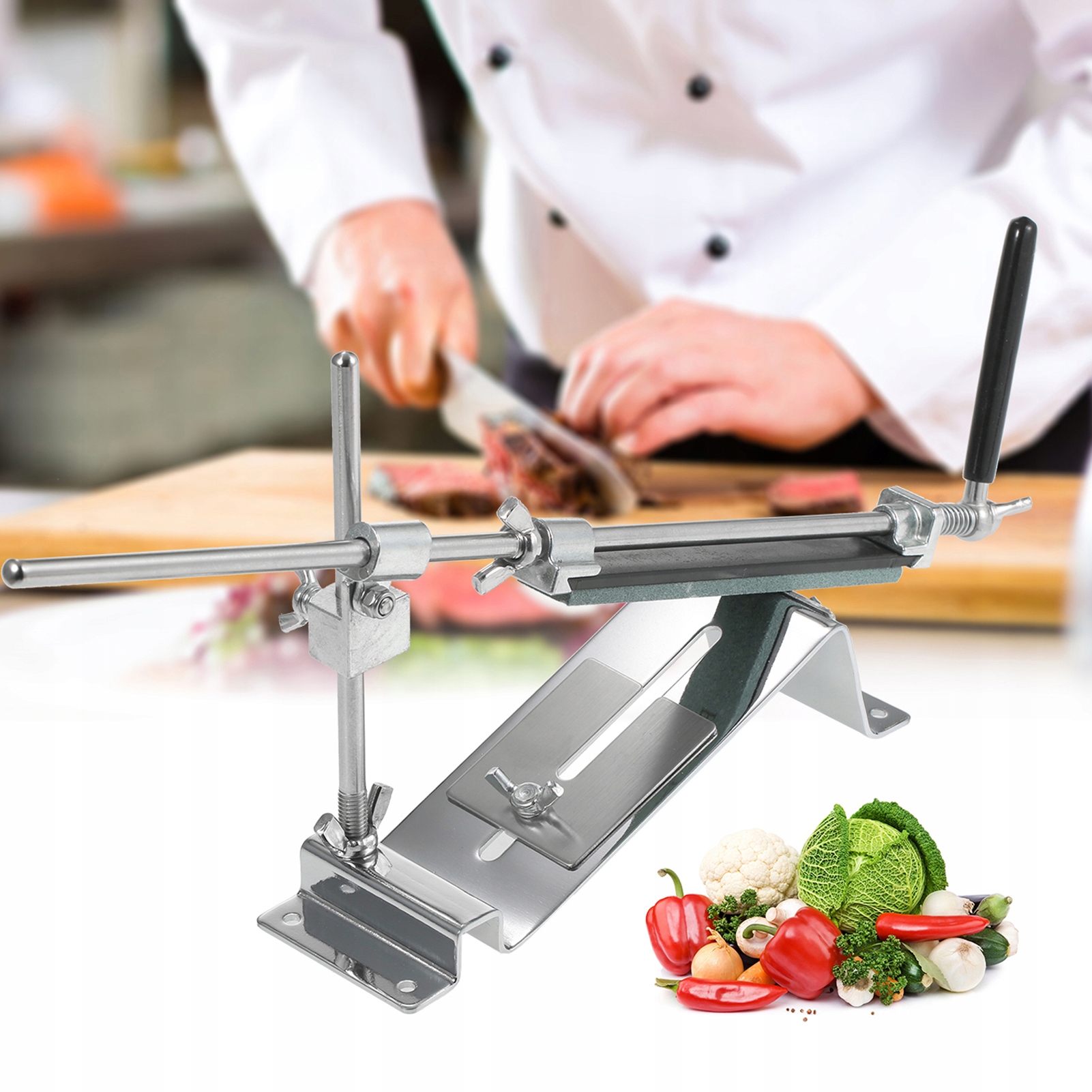 6. Раздвижная часть регулируется в соответствии с различными ножами. 7. Сделано из нержавеющей стали (вместе с винтами), высокое качество использования. Отличный промышленный дизайн, красивый внешний вид.