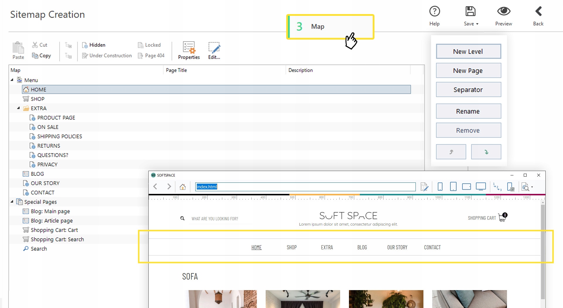 Добавьте все необходимые страницы. Меню навигации будет добавлено автоматически в зависимости от содержимого и доступно немедленно.