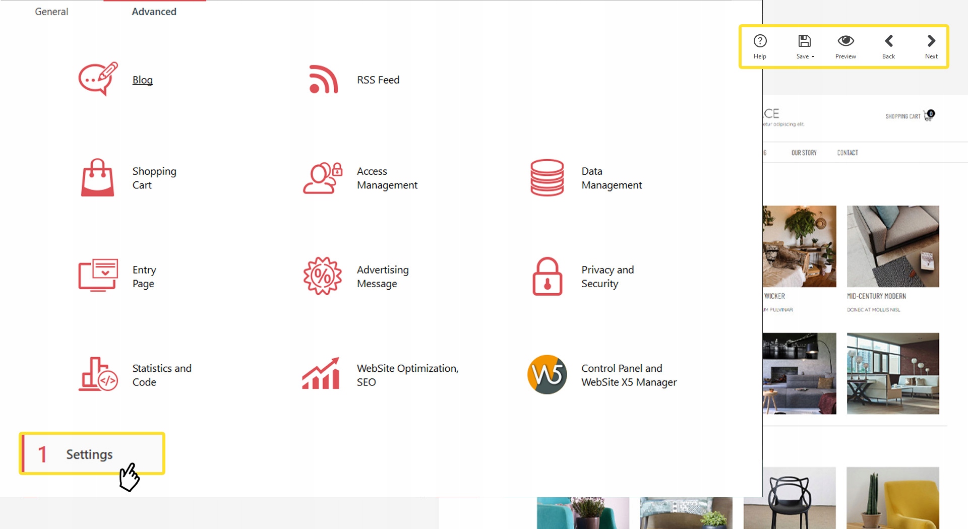 Выберите тип сайта, который хотите создать и активируйте необходимые функции: корзину покупок, блог, галерею и т. д.