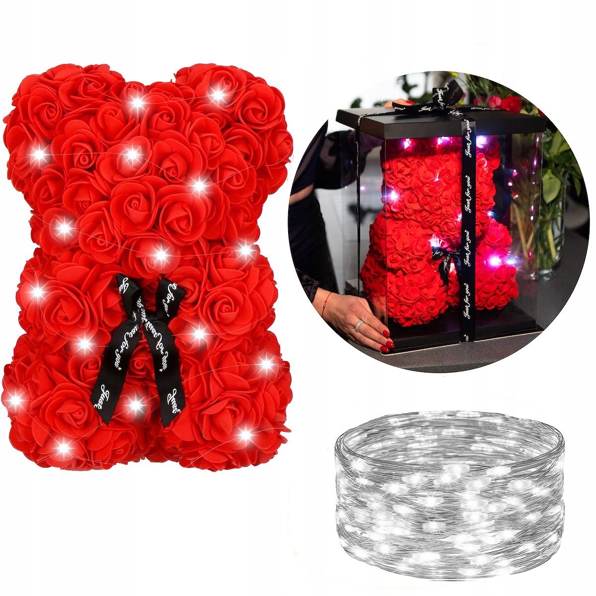 ВЕДМЕДИК З ТРОЯНДАМИ 30 СМ ТРОЯНДОВИЙ ВЕДМЕДИК З ПЕЛЮСТКАМИ ТРОЯНД ПОДАРУНКОВА КОРОБКА+20LED