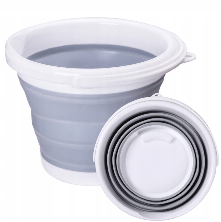Складная конструкция делает ведро идеальным для использования на открытом воздухе: его можно легко сложить и поместить в багажник автомобиля. Высота в сложенном виде всего 5 см.