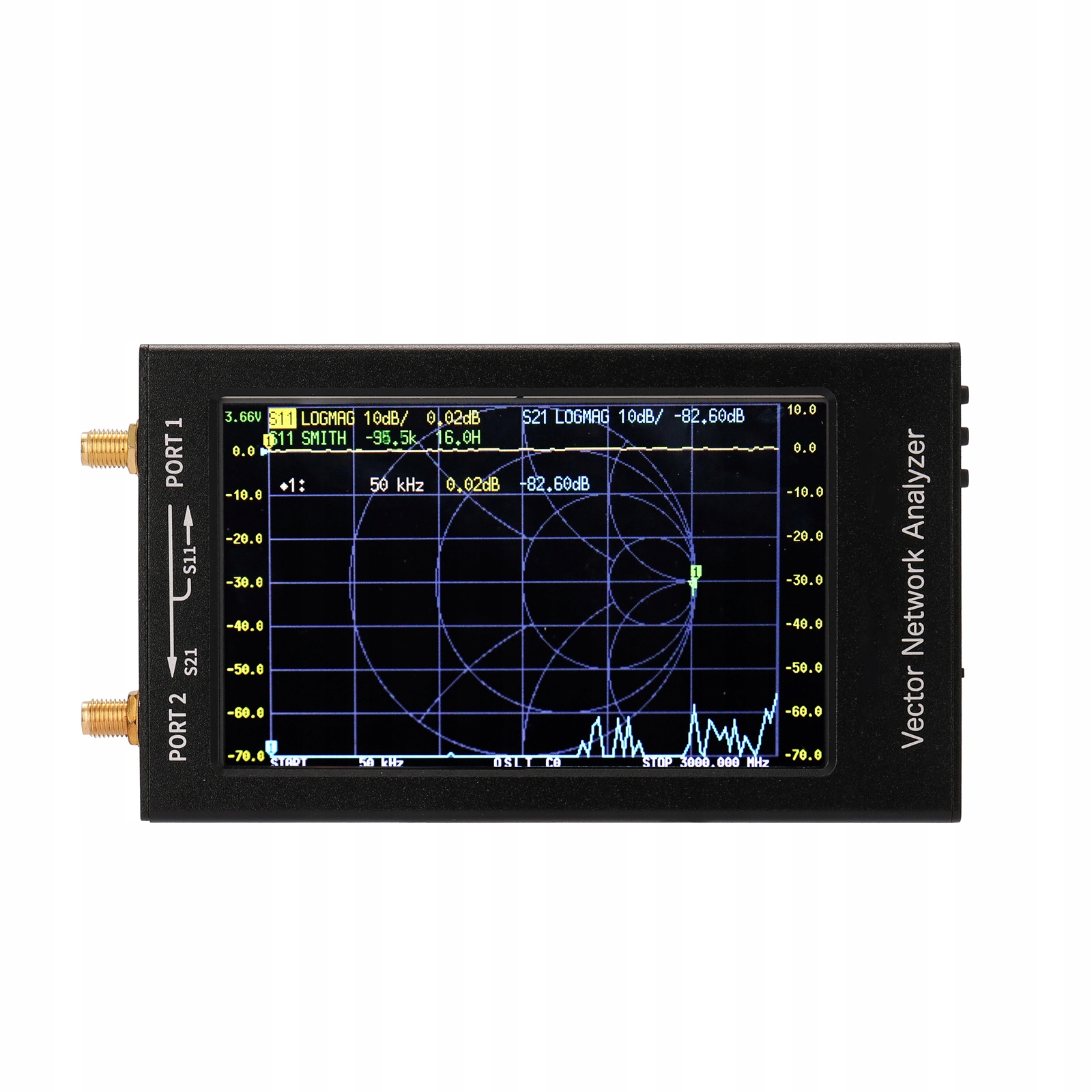 Этот портативный векторный анализатор цепей является новым продуктом. Он использует 4,3-дюймовый ЖК-дисплей IPS и корпус из алюминиевого сплава. В стандартной комплектации он оснащен литиевой батареей большой емкости 5000 мАч. Поддержка сенсорного экрана и боковой кнопки, поддержка китайского и английского интерфейса. Дизайн этого продукта основан на S-A-A V2 от OwOcomm, а на основе предыдущего продукта была выполнена глубокая оптимизация программного обеспечения. Диапазоны измерений расширены до 3 ГГц, а динамические диапазоны больше. Измерения более точные, а работа более удобная.
