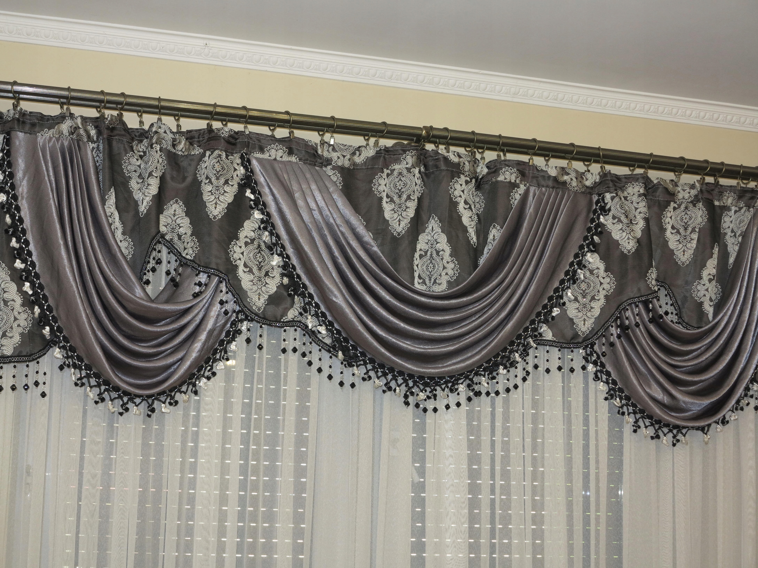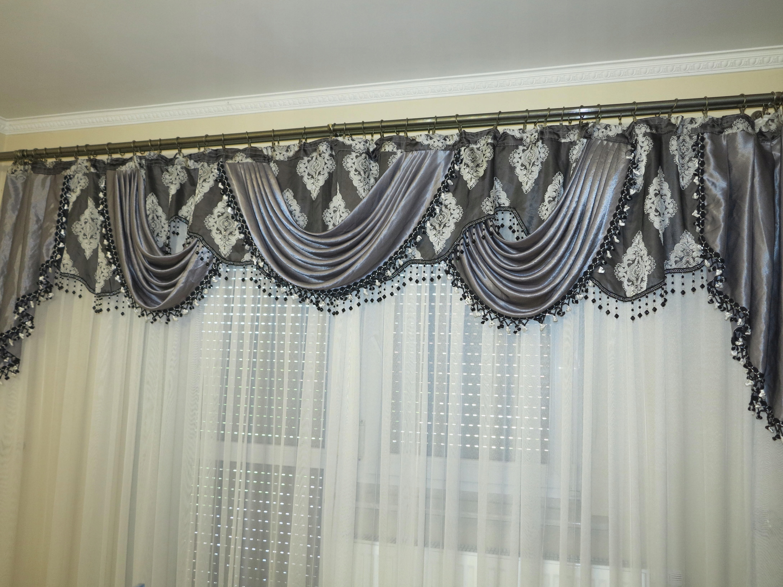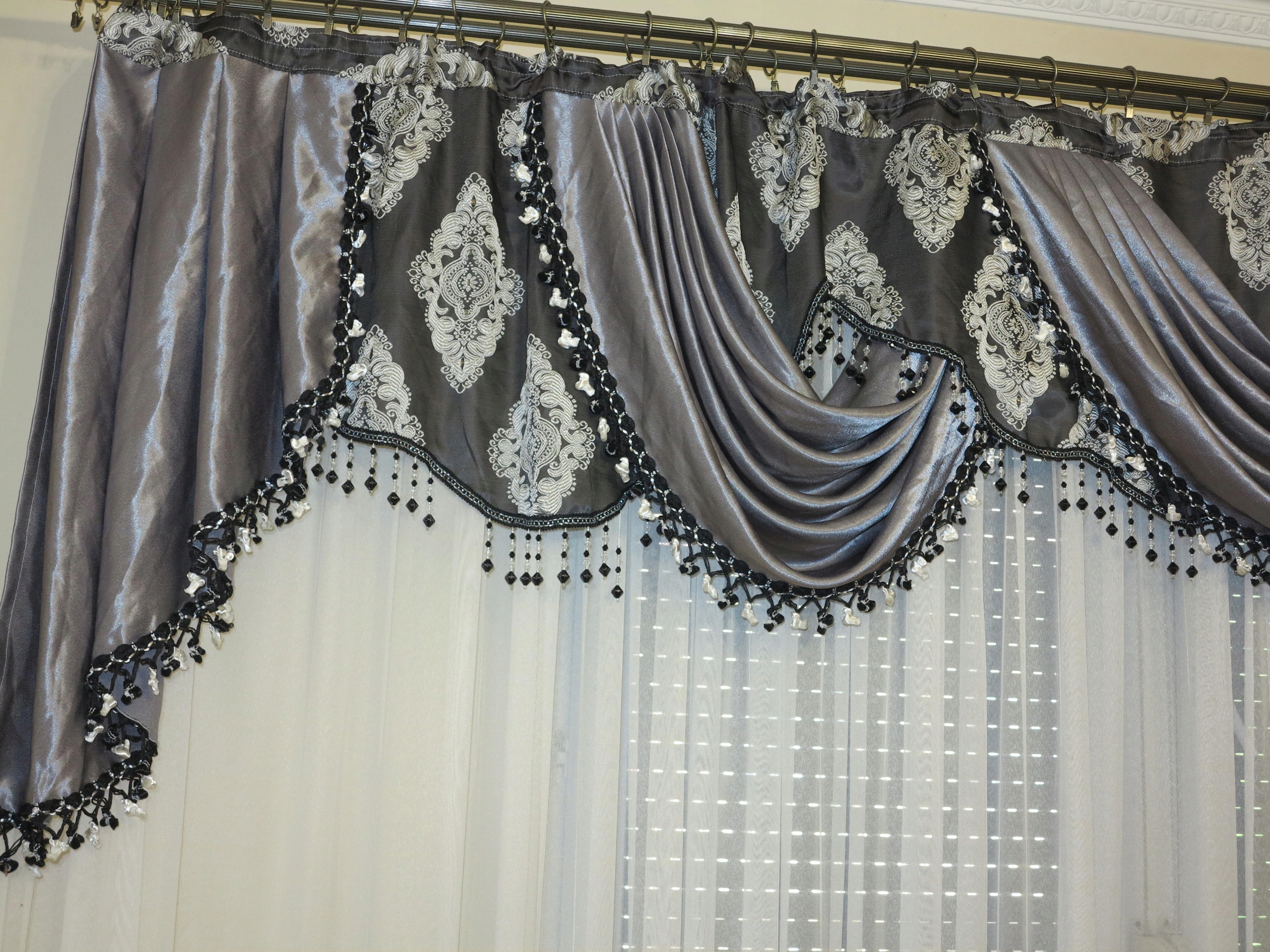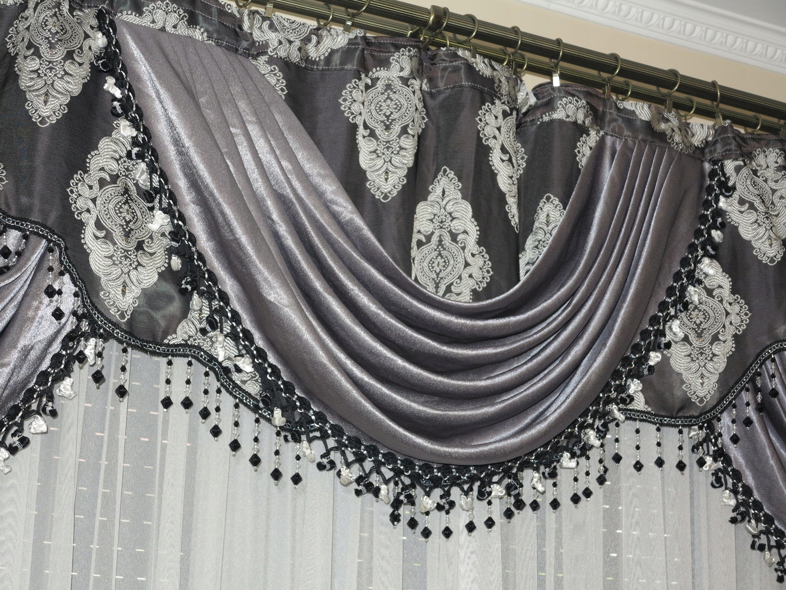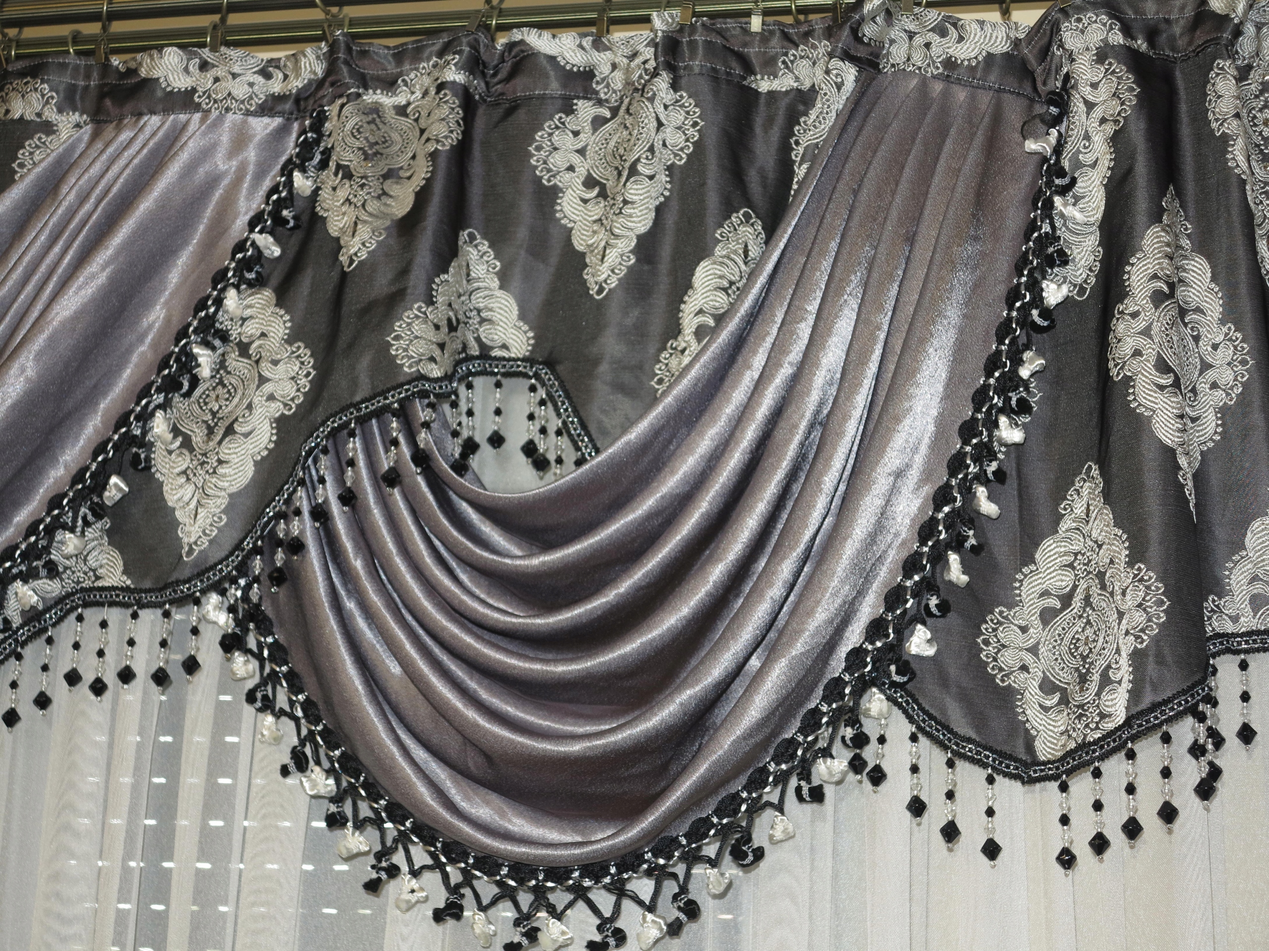 Предмет аукциона – красивый и чрезвычайно тщательно сшитый, поистине дворцовый ламбрекен в серебристо-черном цвете. Ламбрекен б/у, в очень хорошем состоянии и качестве. Рекомендую