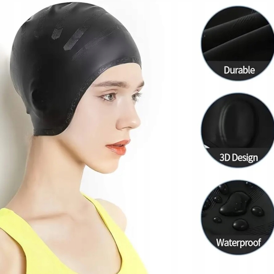 Толстый и прочный ПРЕССОВАННЫЙ СИЛИКОН плотно прилегает к коже, эффективно защита волос и ушей от намокания. Шапочка специально профилирована таким образом, чтобы максимально плотно защитить волосы от намокания.