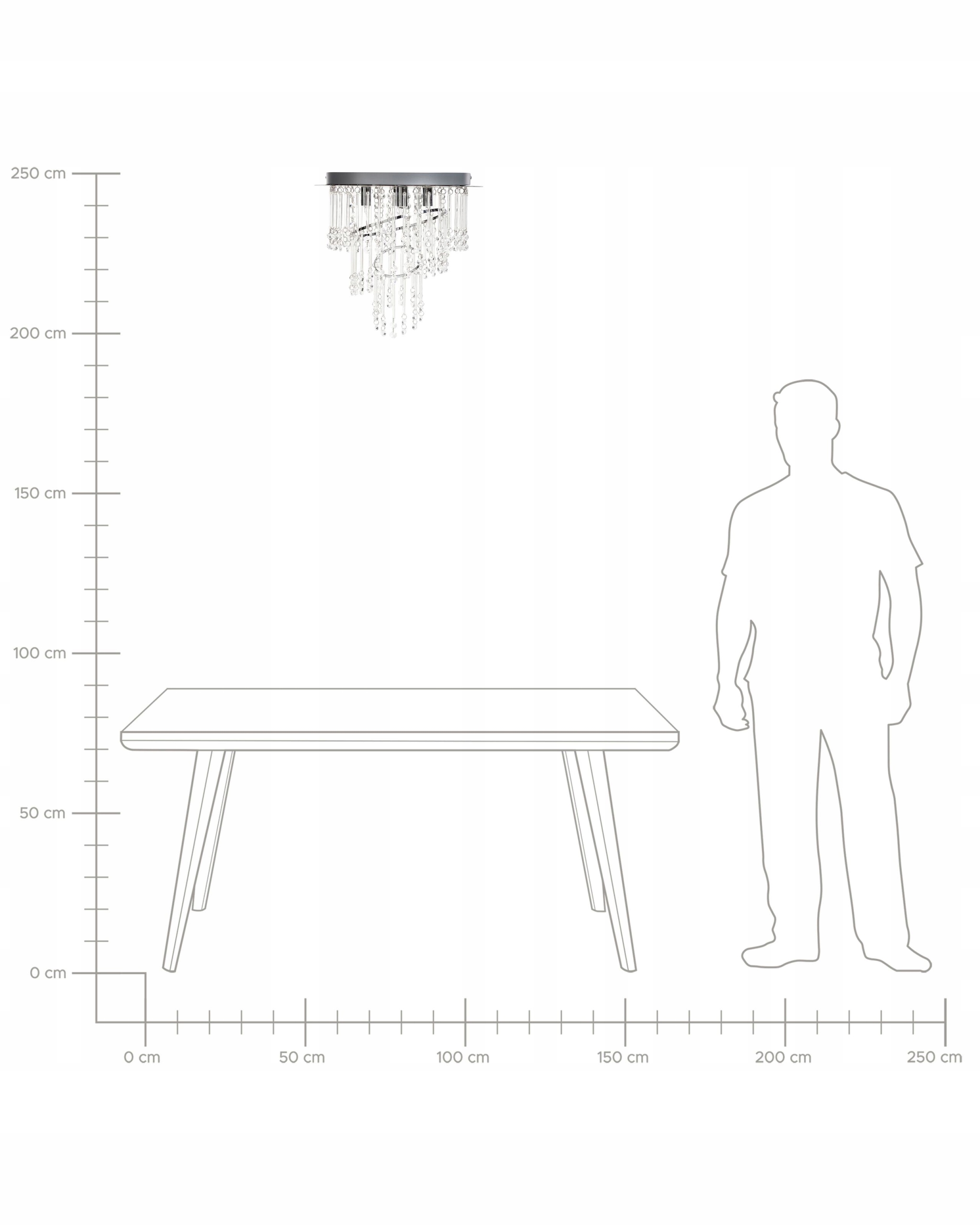 Эта современная люстра имеет металлический каркас с хромированной отделкой. Он состоит из серии тщательно ограненных стеклянных кристаллов, которые элегантно свисают, улавливая и отражая свет, создавая ослепительный эффект. Его минималистичный, но роскошный стиль делает его идеальным украшением современного жилого помещения.