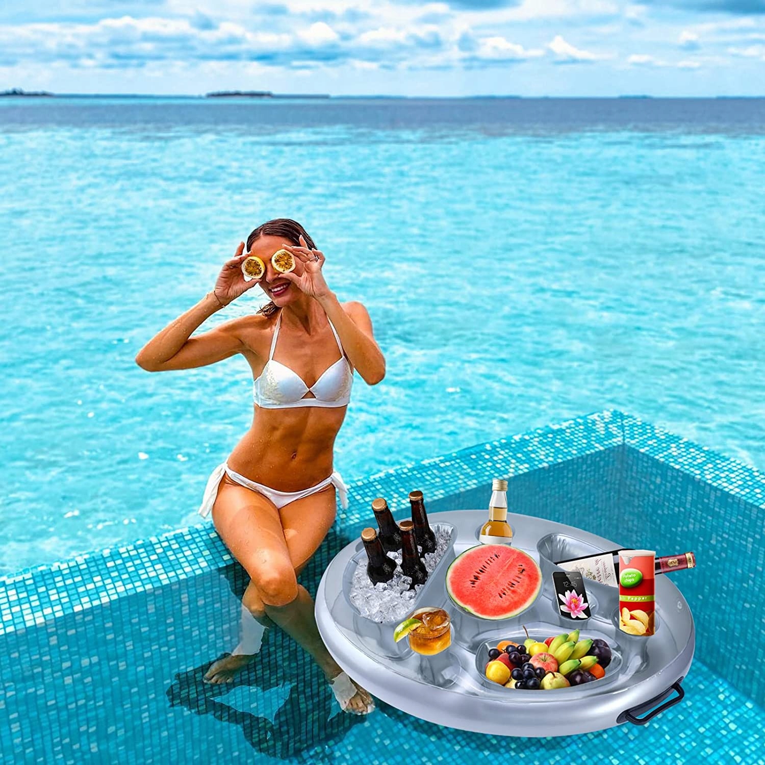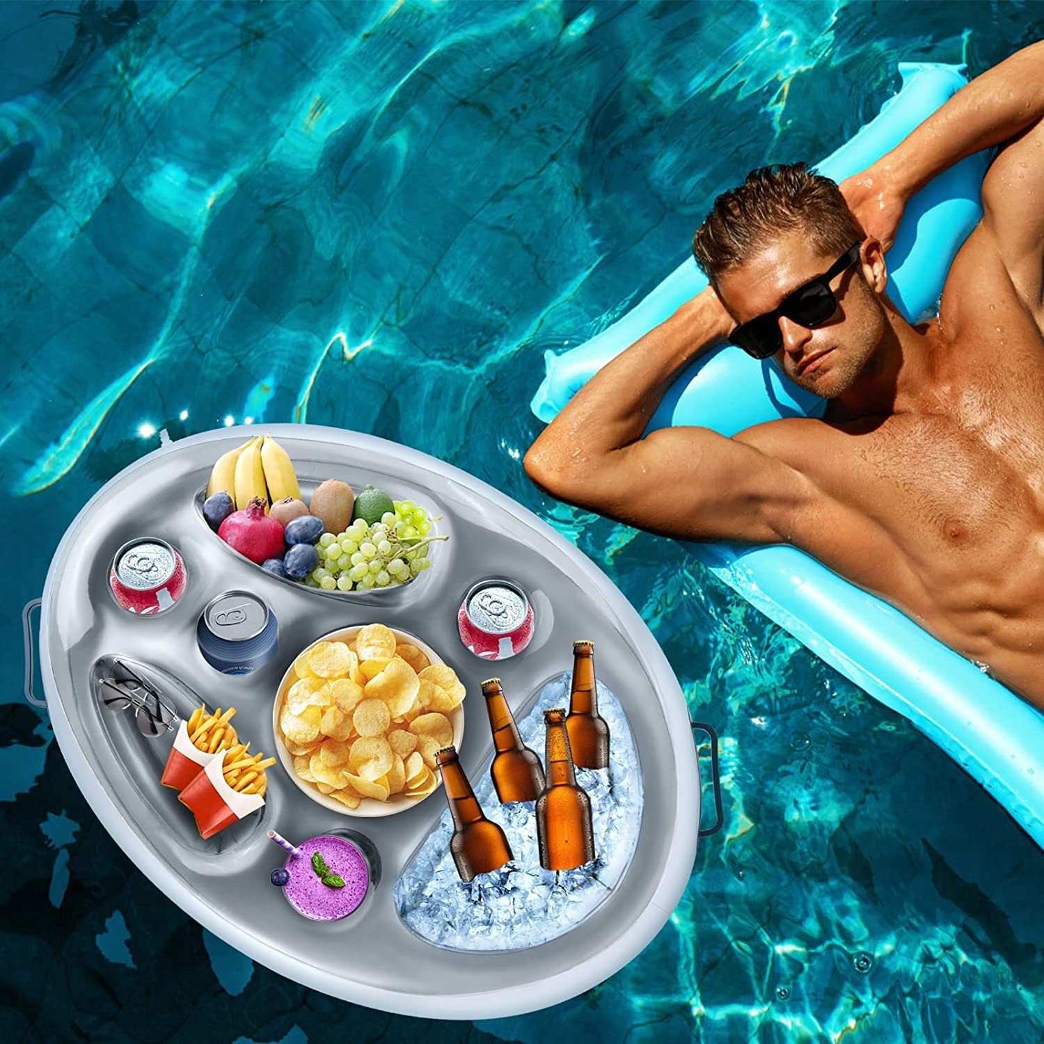 Обязательное лето - плавучий стол идеально подходит для вечеринок в бассейне, для детей, для спа -каникул, на пляже, на день рождения или летних встреч. Также для ванн, горячих источников, пляжей. Если у вас есть желание плавания, вы можете быстро купить плавание, идеально подходящее для спокойного, расслабляющего времени.