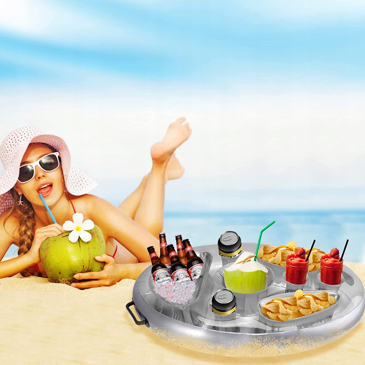 качественный материал -новый тип надувных напитков для напитков и высококачественных ПВХ, водонепроницаемых и прочных закусок. Оснащен 2 ручками для легкой тяги и подключения. Возможность повторного использования.