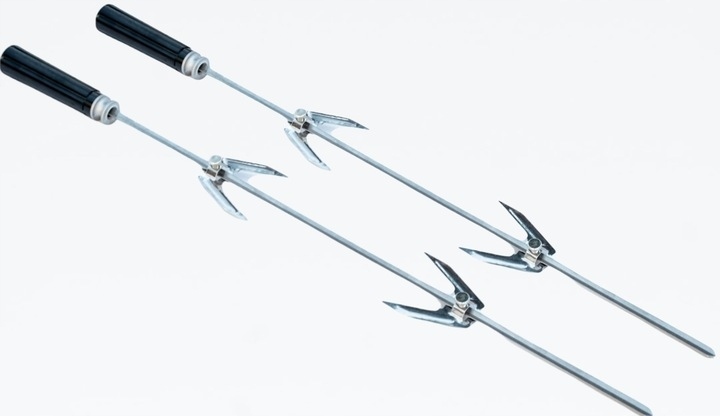 - Вертел оснащен 2-мя ручками-вилками, расстояние между которыми можно регулировать с помощью винтов.