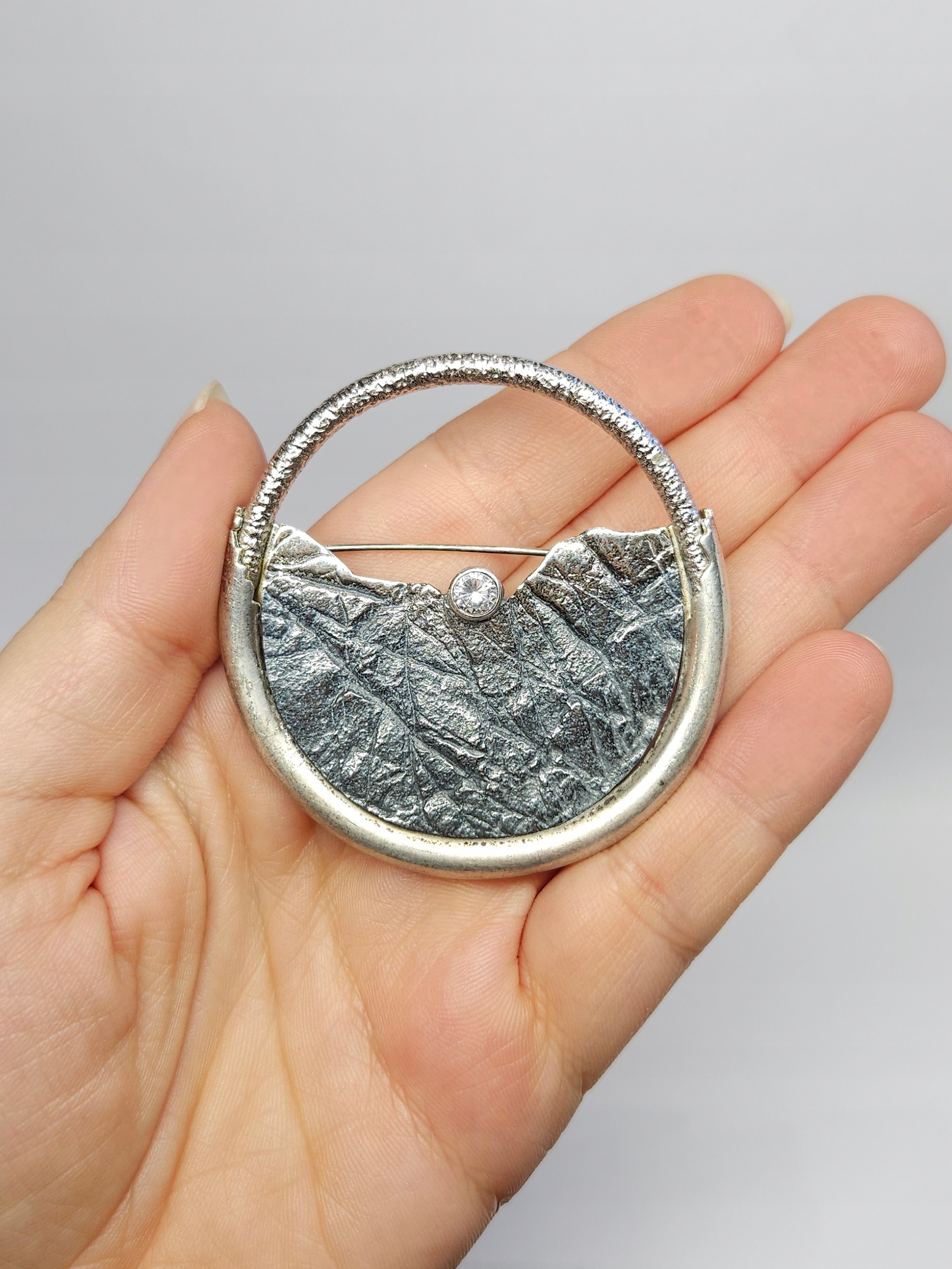 Большая серебряная брошь с натуральным камнем, серебро 0,925 Ранбористы