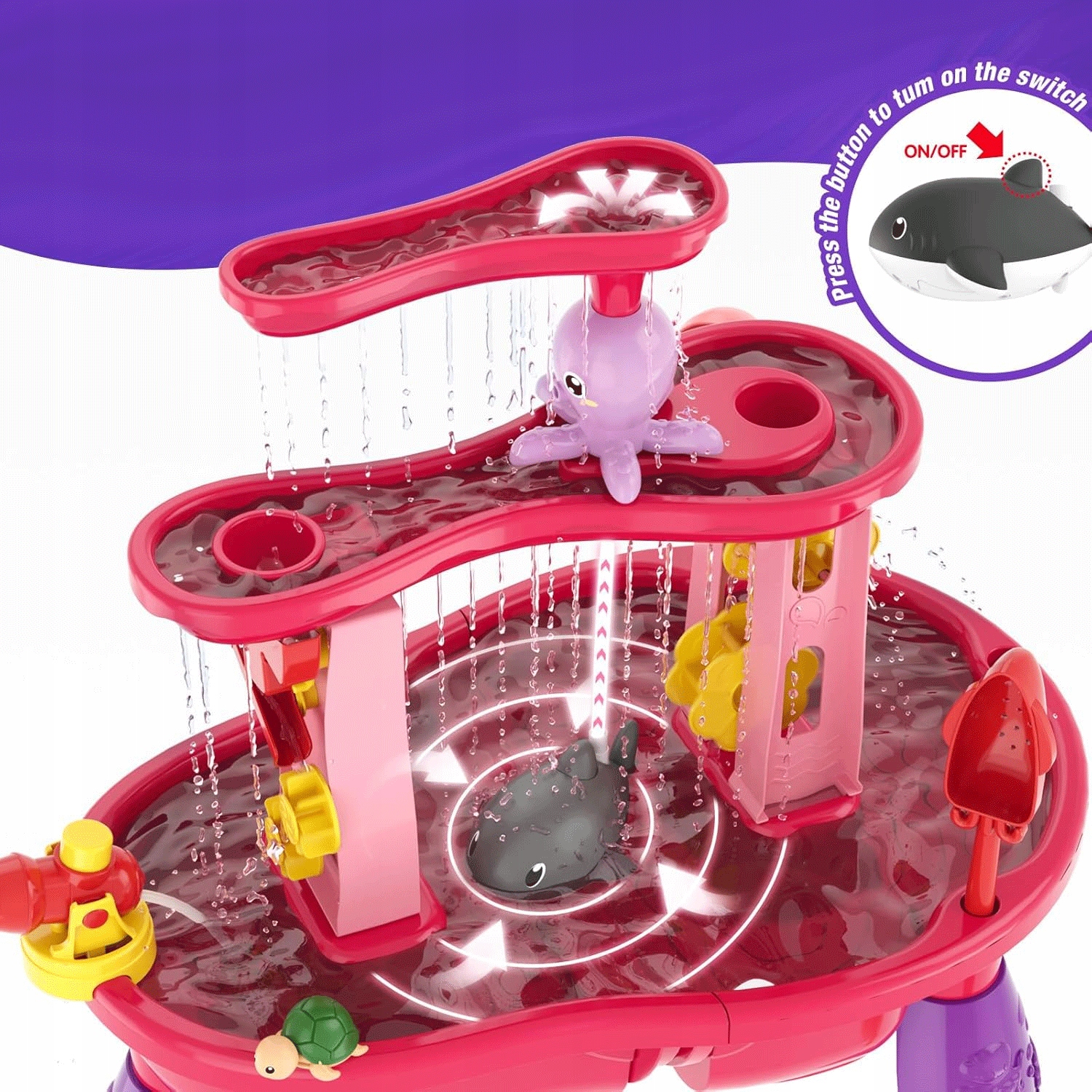 Этот стол воды оснащен водяным насосом с акулой, b> дети могут наслаждаться непрерывным потоком воды.