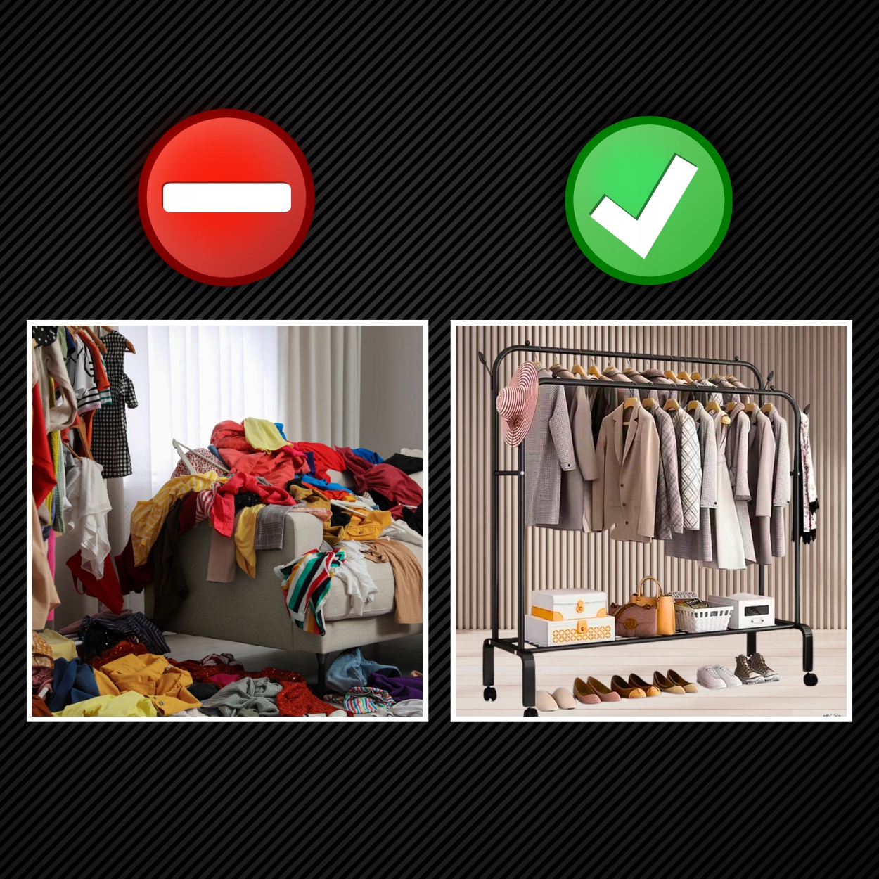 ▶ Оставление одежды на вешалке гарантирует не только комфорт и свободу, но и делает их в правильном состоянии, в случае дожденной ауры, которую они могут быстро высохнуть, и они не имеют место в порядке сохранения в комнате.
