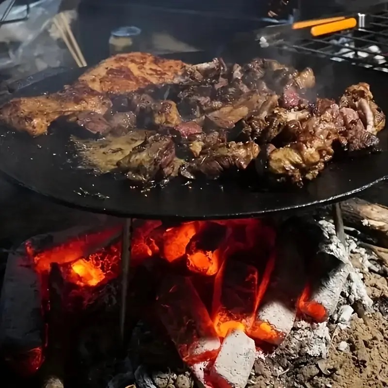 Мы предлагаем round, чугунный гриль Ø 45 см для использования непосредственно над открытым огнем. Созданный полностью из солидного чугуна без каких -либо покрытий (без тефлона, эмали), это гарантирует превосходную силу и даже распределение тепла. Идеально подходит для жарки, выпечки и жаркого мяса, овощей, яиц и многих других блюд под облаком!