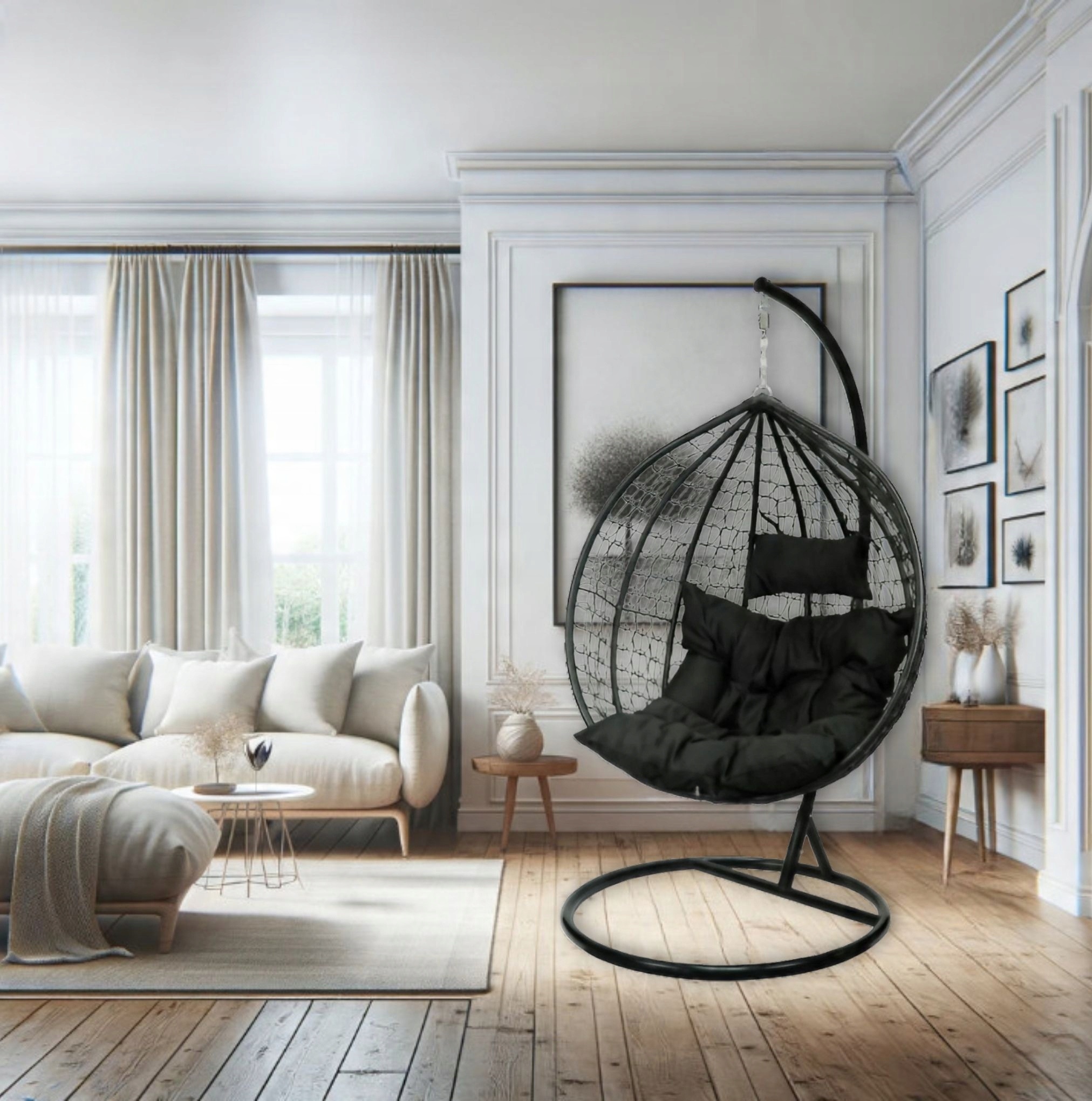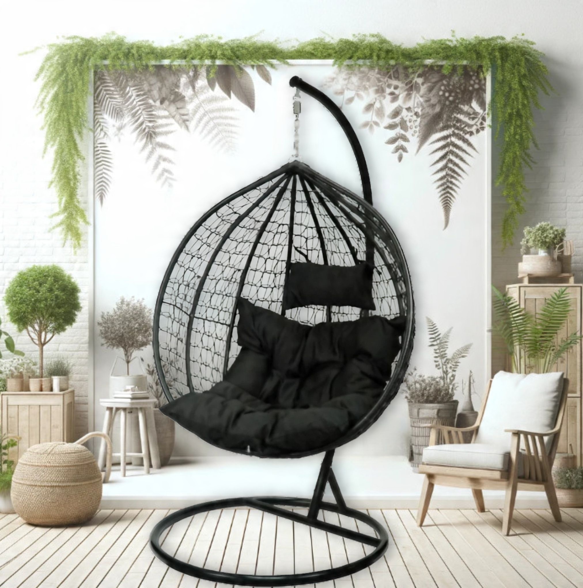 ❤️ ПОДВЕСНОЙ СТУЛ «ЧЕРНЫЙ КОКООН» С ЧЕРНОЙ ПОДУШКОЙ XXL GARDEN