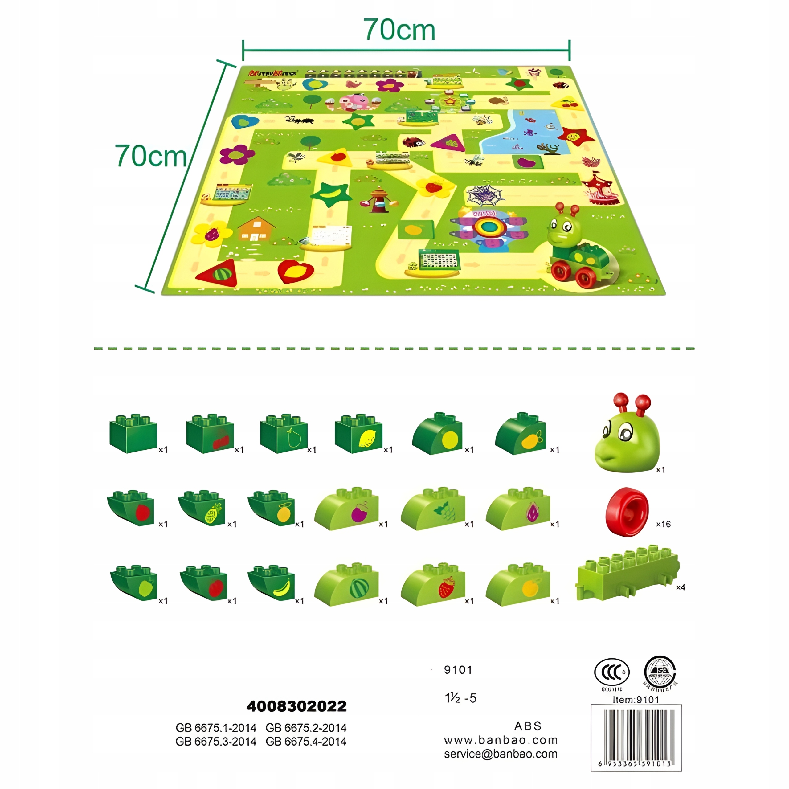 Помимо обучающего значения, гусеница имеет и практические функции. Упаковка выполнена в виде чемодана, что позволяет хранить кубики и играть где угодно.