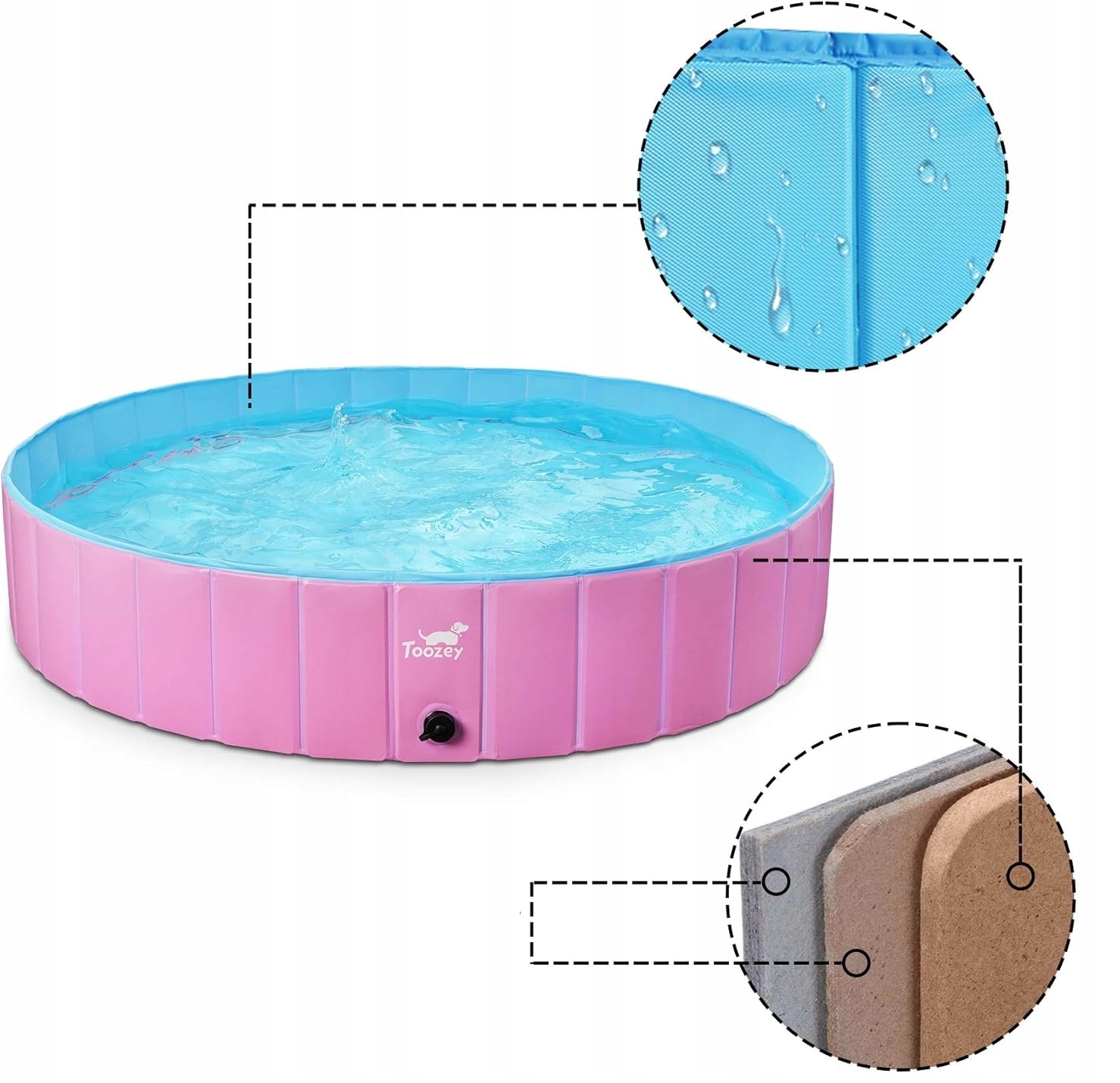 бассейн имеет анти -слабую дно, которое является долговечным и обеспечивает вашему животному большую безопасность во время купания или веселья