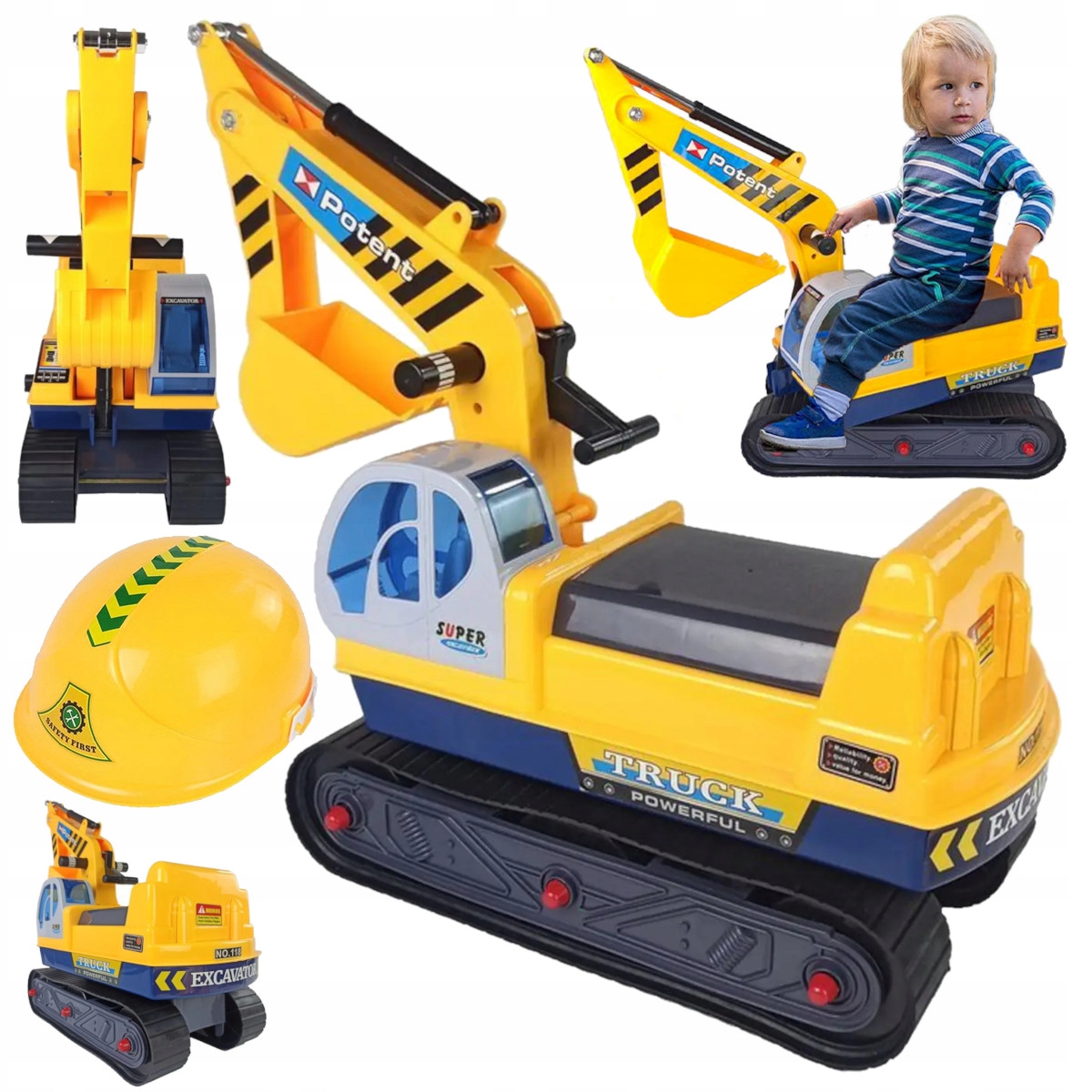 ВЕЛИКИЙ ЕКСКАВАТОР на гусеничних ходах, ПРИВОДНИЙ, рухомий ківш, ІГРАШКА + регульований ШОЛОМ