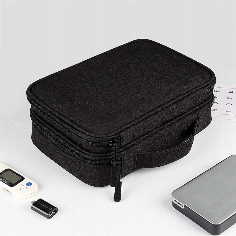 ДВОЙНОЙ СУМКА-ОРГАНИЗАТОР ДЛЯ АКСЕССУАРОВ, КАБЕЛЕЙ, ЗАРЯДНЫХ УСТРОЙСТВ ЧЕРНОГО ЦВЕТА