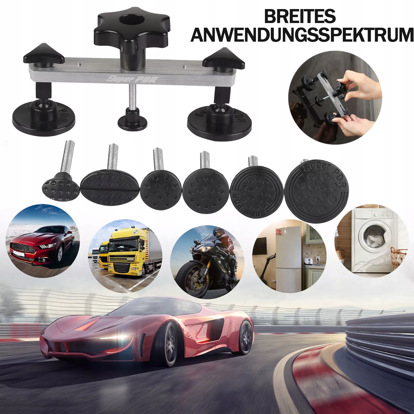 5 различных аксессуаров для ремонта вмятины: