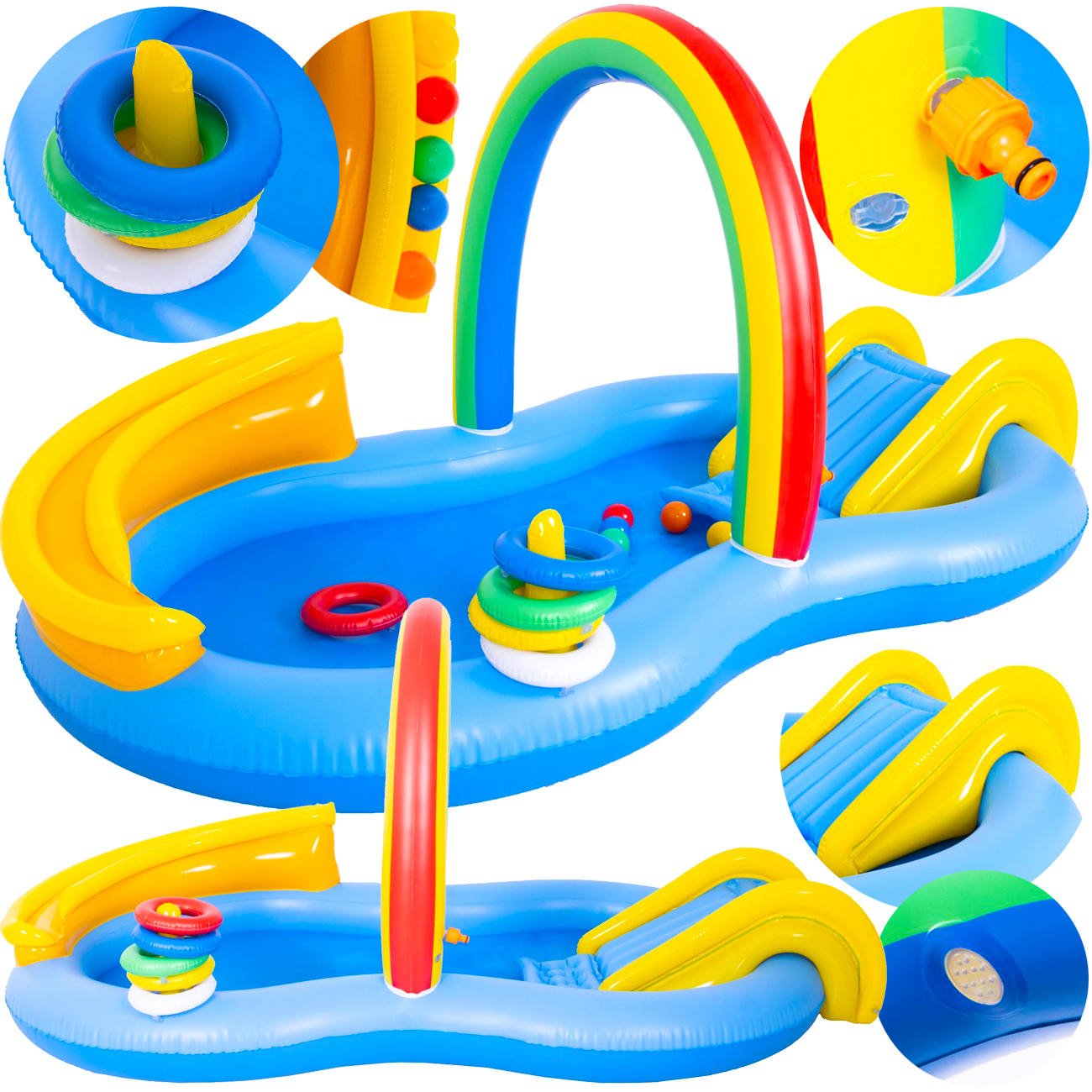 ✳ садовый бассейн 51348 Avenli - это красочный и функциональный набор воды, предназначенный для детей. У него есть много достопримечательностей, таких как слайд, опрыскивание воды и элементов для веселья, таких как кольца и шарики, что обеспечивает отличное развлечение в жаркие дни.