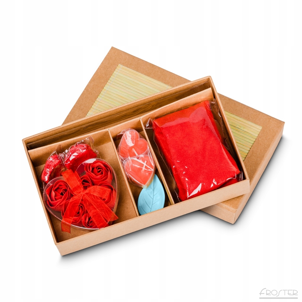<ул>Набор романтических банных принадлежностей в декоративной коробочке.