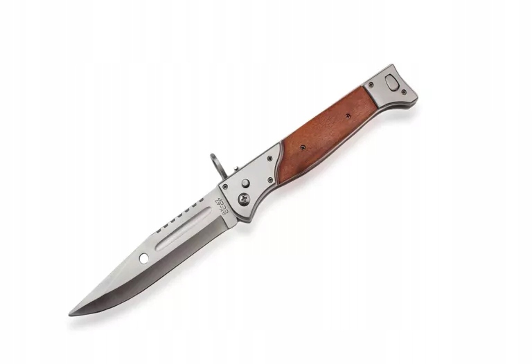 Пружинный нож имеет погружной фиксатор, который с одной стороны предотвращает непреднамеренное закрытие лезвия, а с другой стороны защищает кнопку от откройте его, чтобы механизм не сработал самопроизвольно.