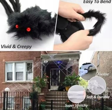 Вы ищете украшение, которое произведет впечатление на ваших гостей и гарантирует темную атмосферу Хэллоуина ? Этот гигантский паук с впечатляющим пролетом ног 150 см - хит!