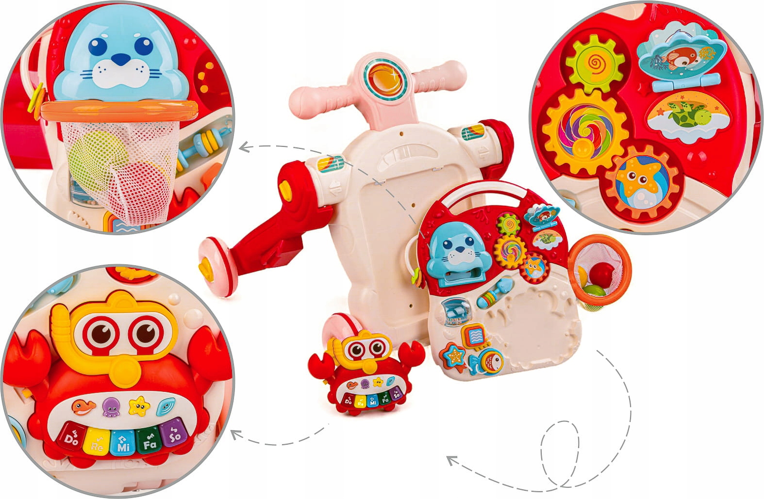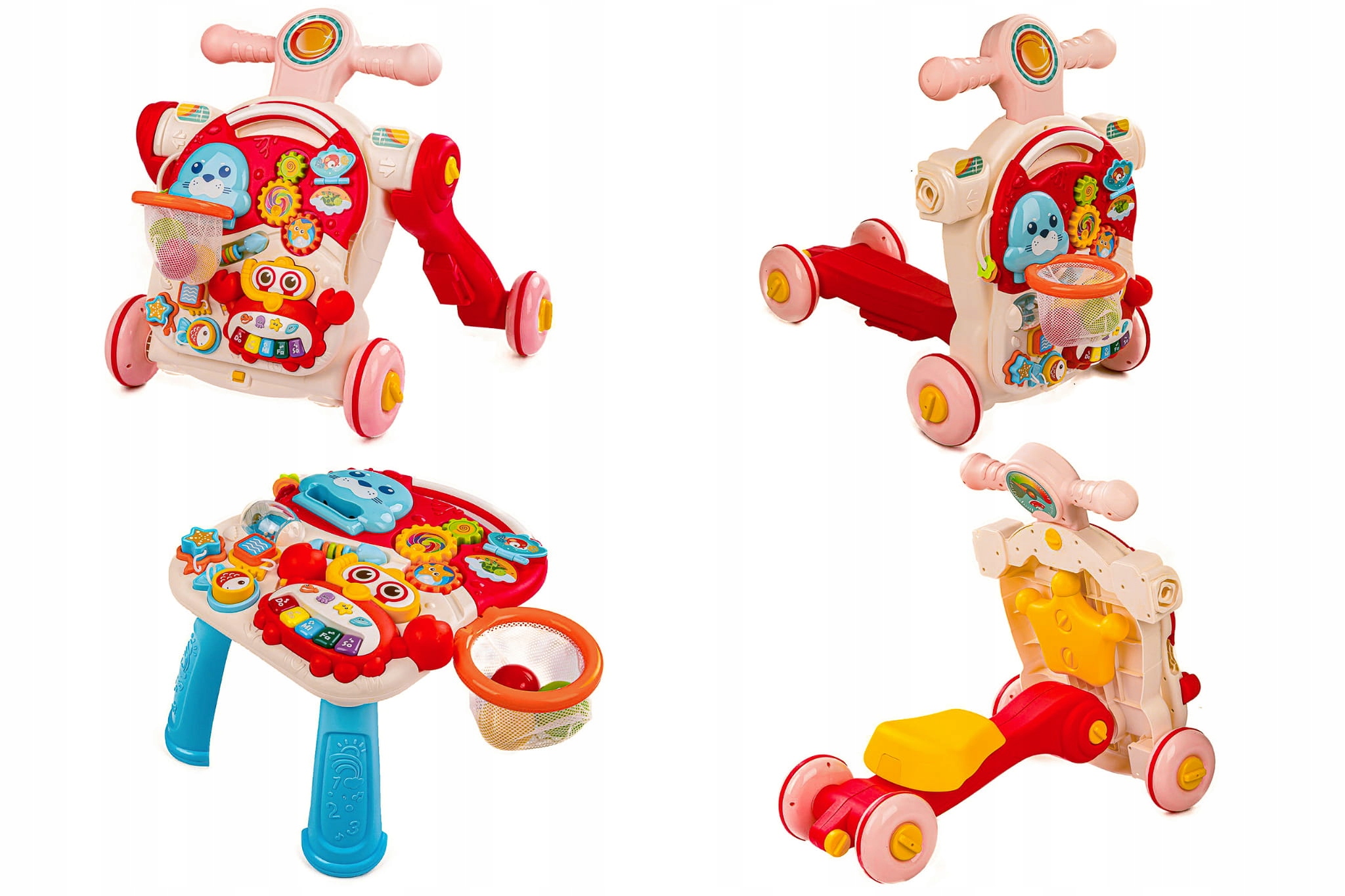 - Игрушка 4 в 1: толкатель, каталка, велосипед, развивающий стол
