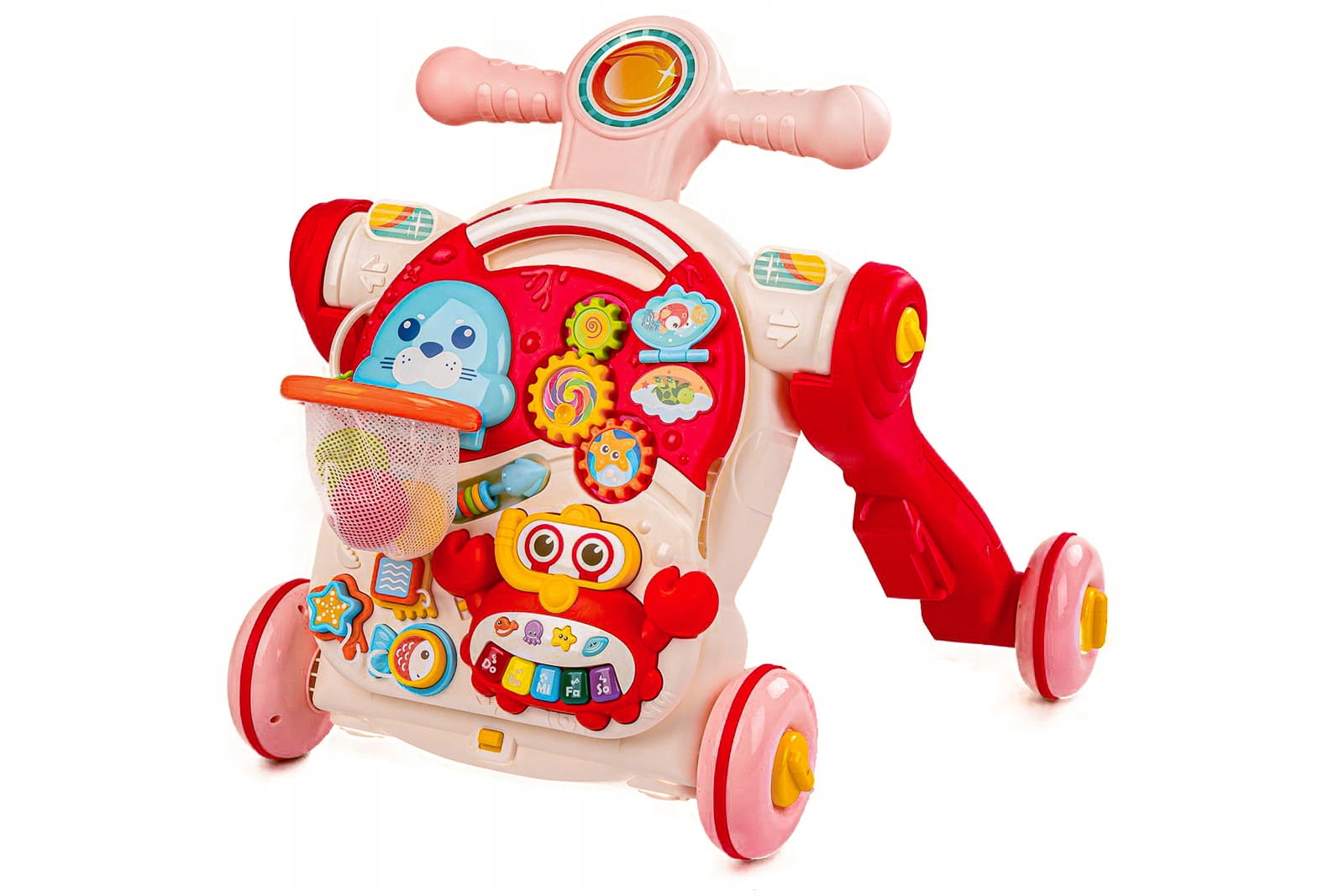 - Благодаря развивающей панели мы легко можем превратить нашу толкушку в развивающий стол.