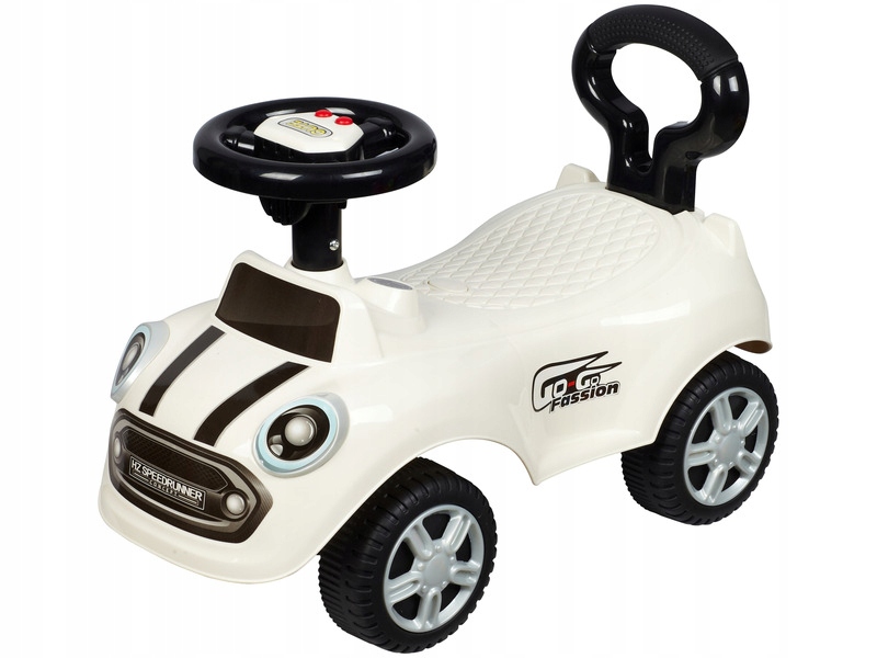 Возраст: 12 м+. Размеры: 65 х 30 х 40 см. Максимальная нагрузка на коляску: 25 кг. Руль со звуком. Пластиковое сиденье с высокой спинкой. Спинка может выполнять функцию толкателя. Большие пластиковые колеса. Защита от обратного опрокидывания. Ограниченная способность поворачивать.