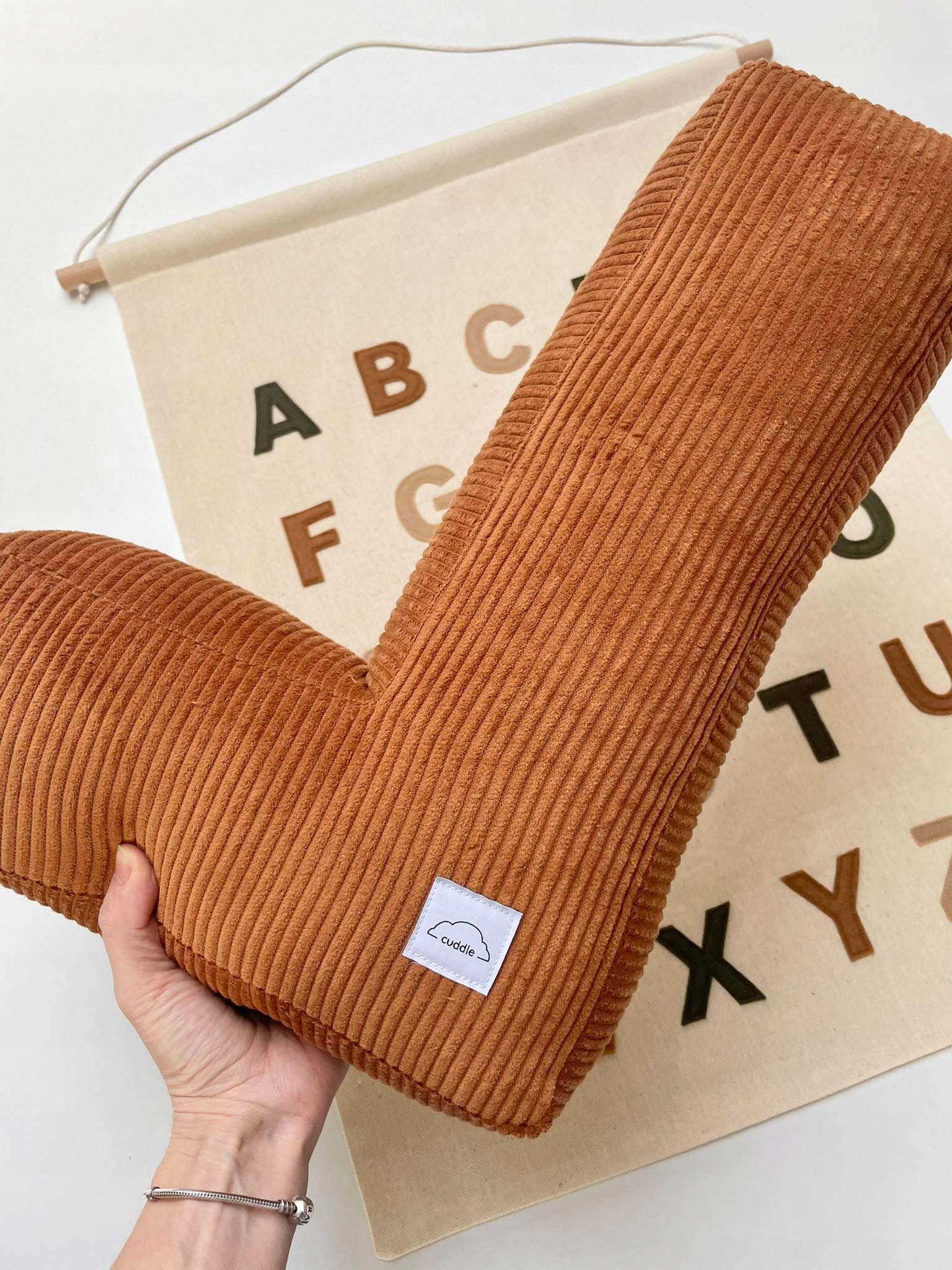 После покупки в "сообщении продавцу" укажите букву и цвет вельвета, из которого оно будет изготовлено