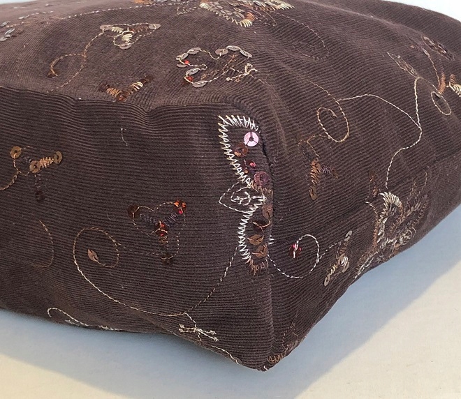 Сумка застегивается на магнит, отделана подкладкой с карманом посередине