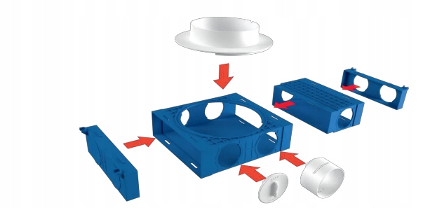 - МОДУЛЬНАЯ СИСТЕМА ФИТИНГА:Модульная система вентиляционного фитинга представляет собой набор пластиковых элементов, из которых можно быстро собрать статическая камера или распределитель. Соединения между арматурой герметичные, а патрубки подключения входят в вентиляционные каналы