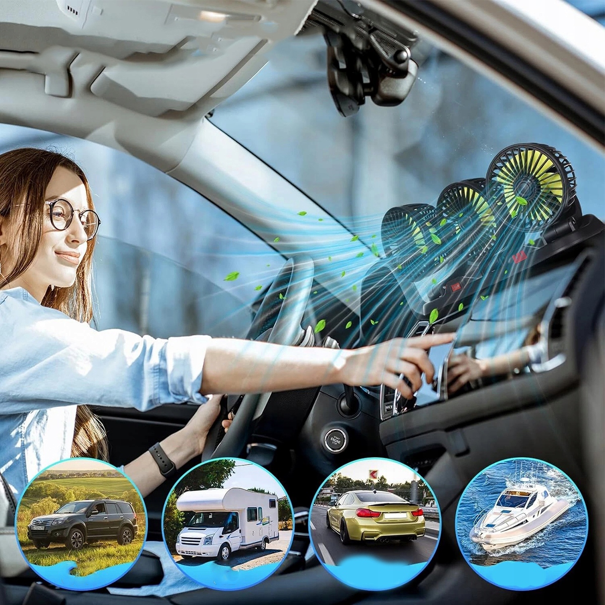 Больше, чем просто фанат! Этот инновационный дизайн тройного вентилятора создает персонализированную климатическую зону в вашем автомобиле. Регулируемые головки позволяют управлять индивидуальным управлением воздушным потоком, а функция ароматерапии обеспечивает свежий запах. Ваше комплексное охлаждающее решение для использования в путешествиях!