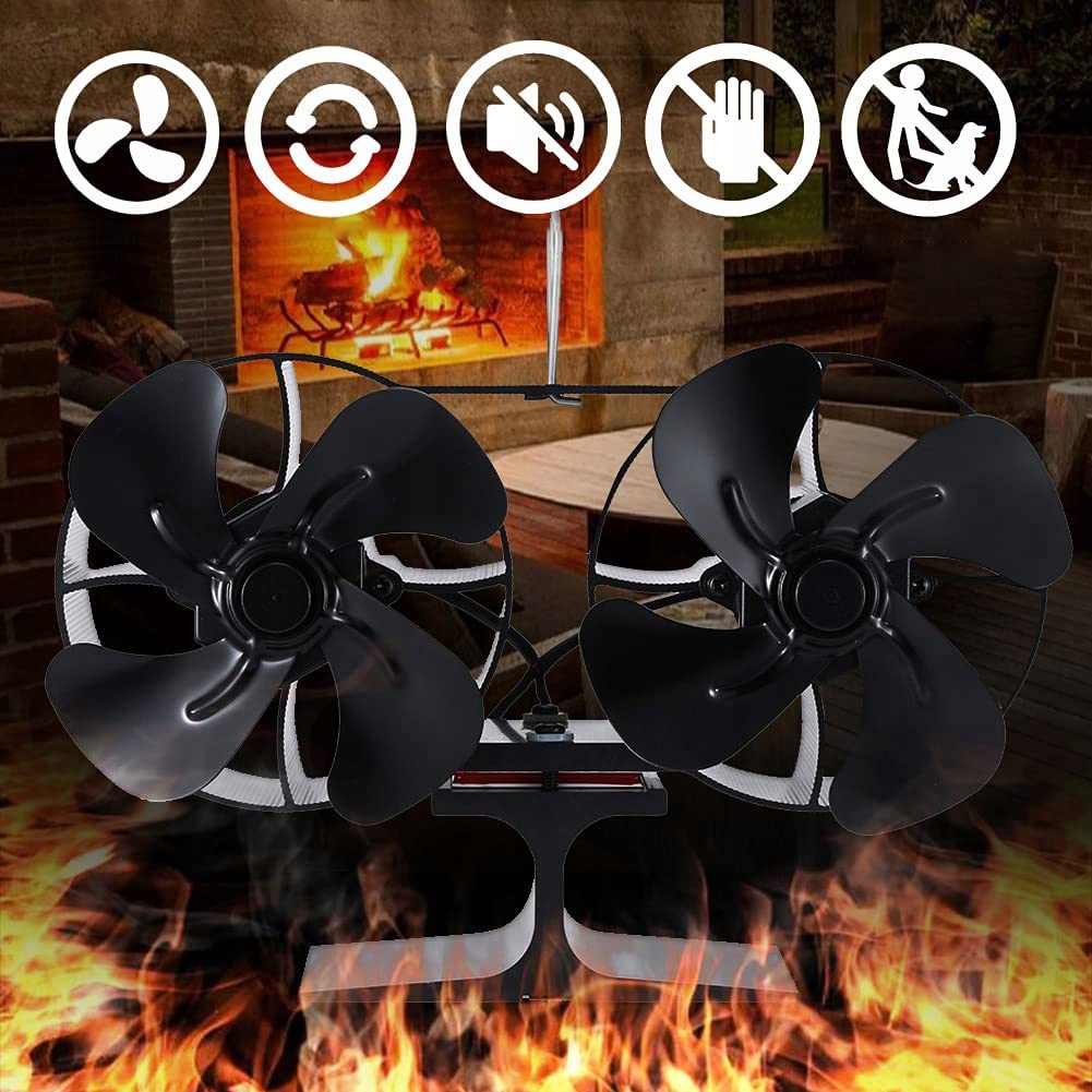 - Двухмоторный вентилятор с горячим воздухом и 8 лопастями для генерации большего количества теплого воздуха и повышения эффективности продукта. Широко используется в дровяных, газовых, дровяных печах, каминах и т. д.