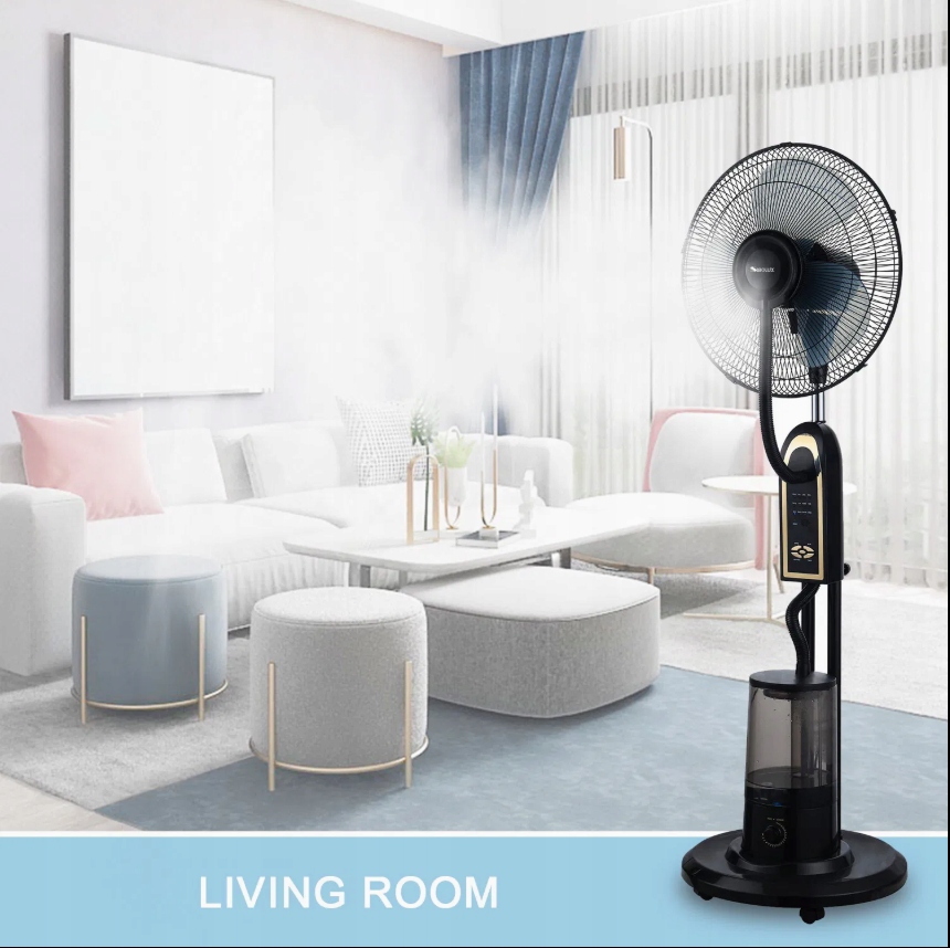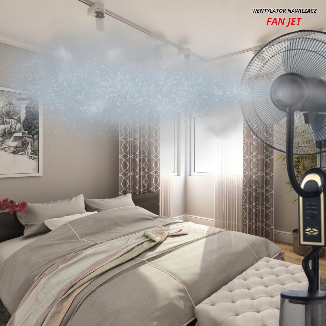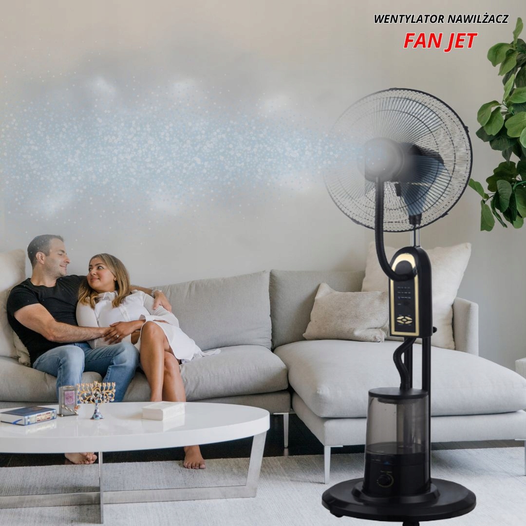 Найдите Fan Jet b>-A Modern 16-дюймовый вентилятор, стоящий с охлаждающим туманом и увлажняющей воздушной функцией. Это устройство 3IN1, которое объединяет силу вентилятора, эффективность увлажнителя и дистанционное управление. Он работает как внутри, так и снаружи - от салонов и офисов до ресторанных садов, складов или террасов.