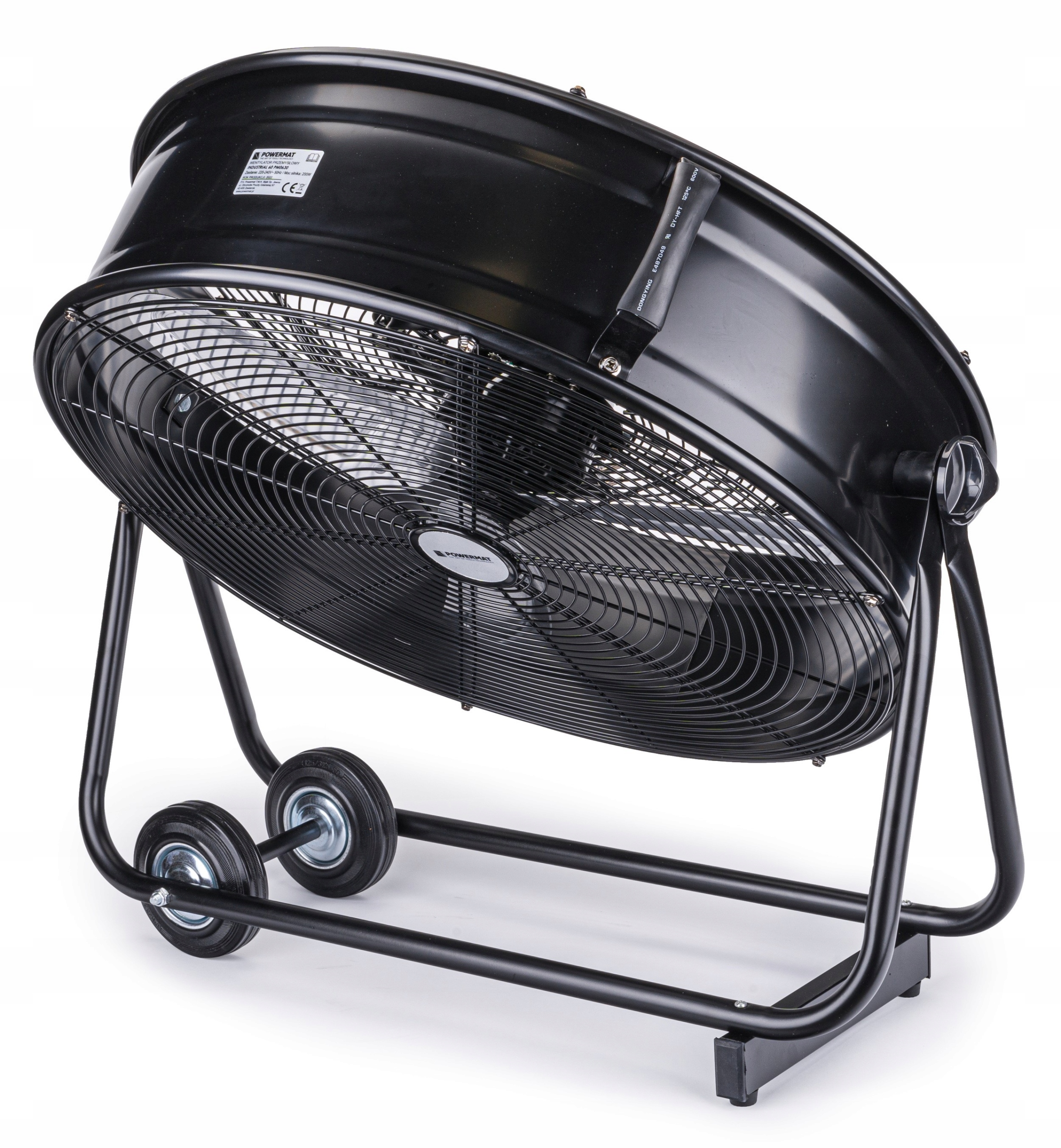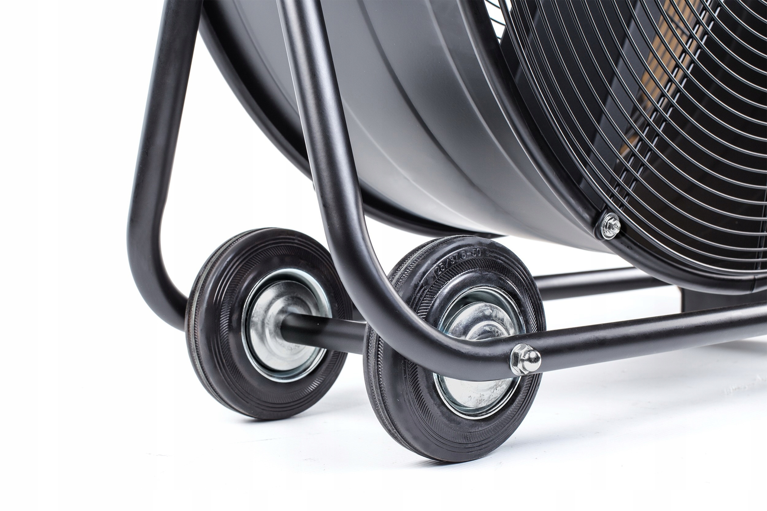 Вентилятор установлен на жестких опорах, что дополнительно снижает вибрации во время работы. Для повышения мобильности вентилятор оснащен двумя прорезиненными транспортировочными колесами и ручками для облегчения транспортировки.