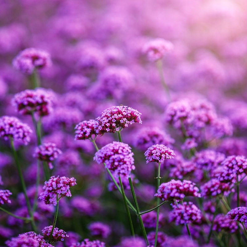 Патагония вербена Вербена бонарская очаровывает большими гроздьями ярко-фиолетовых цветов, расположенных на длинных тонких стеблях. Нежные соцветия изящно покачиваются на летнем ветерке. Обильное цветение длится с июня до заморозков. Если вы ищете цветы, которые будут цвести все лето, Вербена вас точно не разочарует. Этот высокий многолетник достигает около 100-120 см в высоту и имеет диаметр около 40 см. Это растение сильно привлекает насекомых-опылителей, таких как пчелы и бабочки. Вербена патагонская очень устойчива к засухе, а также хорошо справляется с бедной песчаной почвой. Вербена – многолетнее растение, обладающее высокой устойчивостью к грибковым заболеваниям. При уходе за вербеной удалять отцветающие соцветия необязательно.