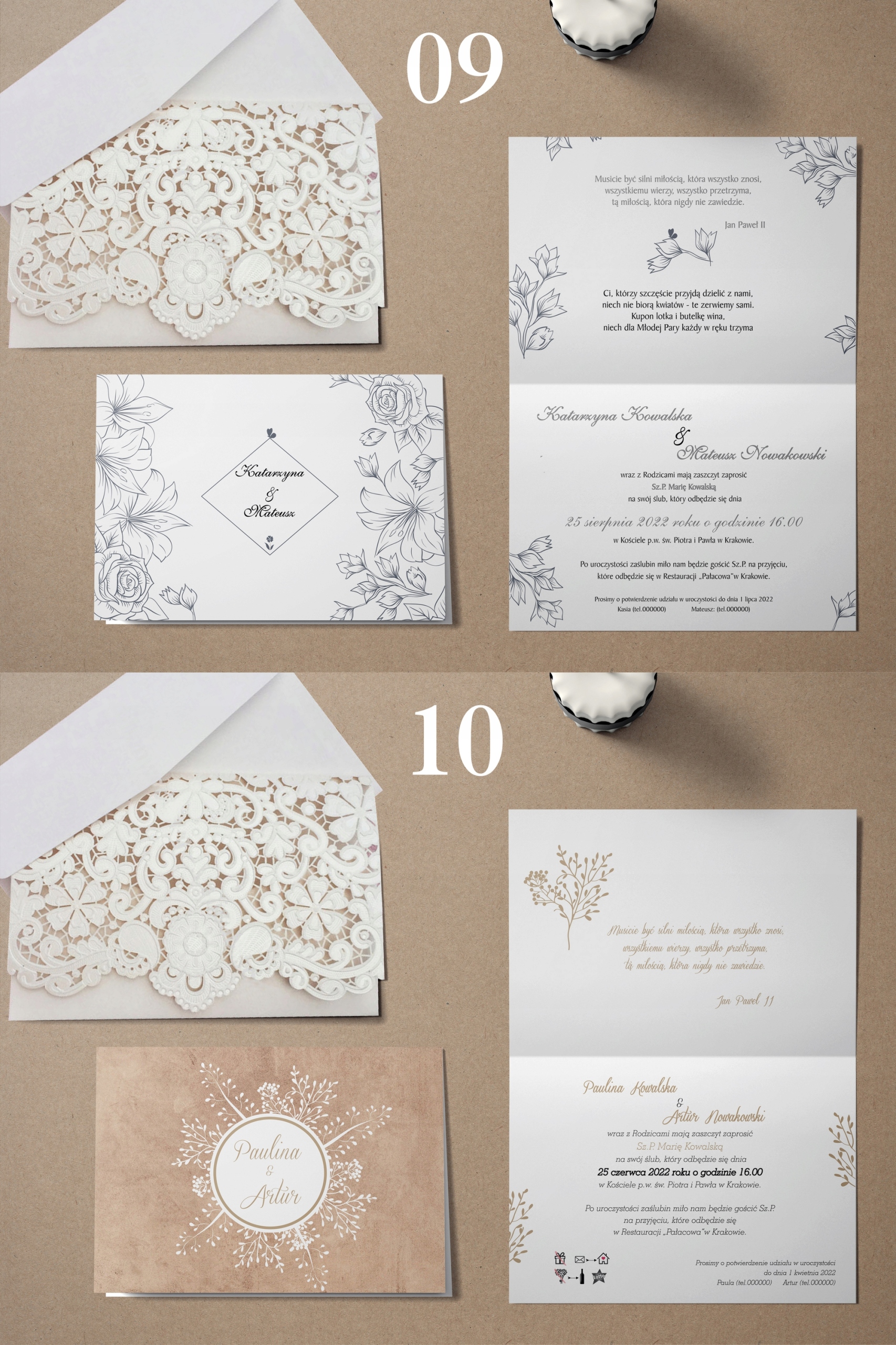Пригласительные можно подобрать под стиль и тему свадьбы. У нас есть множество дизайнов, отвечающих требованиям жениха и невесты.