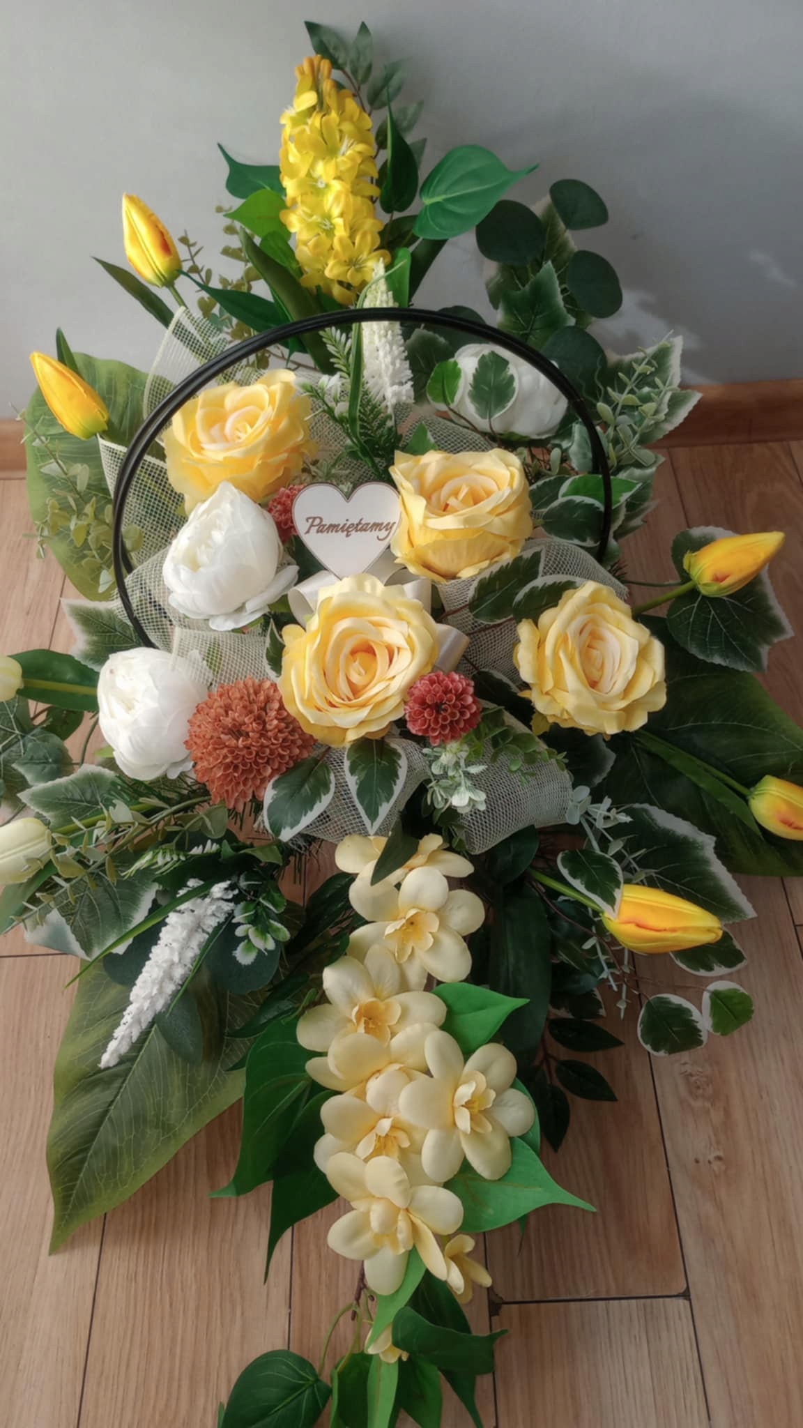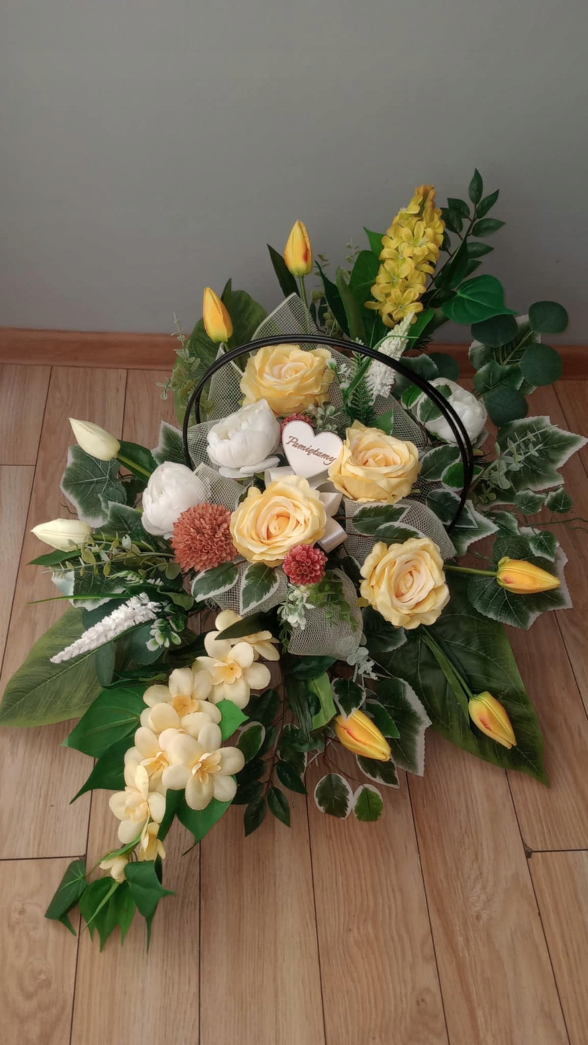 размер и размер, а цвет может немного отличаться в зависимости от того, как мы можем организовать головной убор и от настройки монитора (могут быть различия в листьях, добавках или оттенках цветов- в случае каких-либо недостатков в Склад). Деонация дает ей правильный вес, который предотвращает скольжение могилы. Композиция составляет около 80 см в длину и шириной 50 см