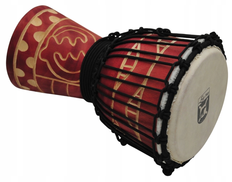 Корпус, изготовленный из одного куска дерева красного дерева, высококачественной мембраны натуральной кожи. ДЖЕМБЕ очень оригинальный, красочно украшенный красивыми этническими скульптурами. Оснащен удобной ручкой. Это инструмент с очень широкими звуковыми возможностями в зависимости от техники игры. Это делает его великолепным как ритмичный инструмент и красочный звук всей группы. Высота 30 см, диаметр мембраны 15 см.