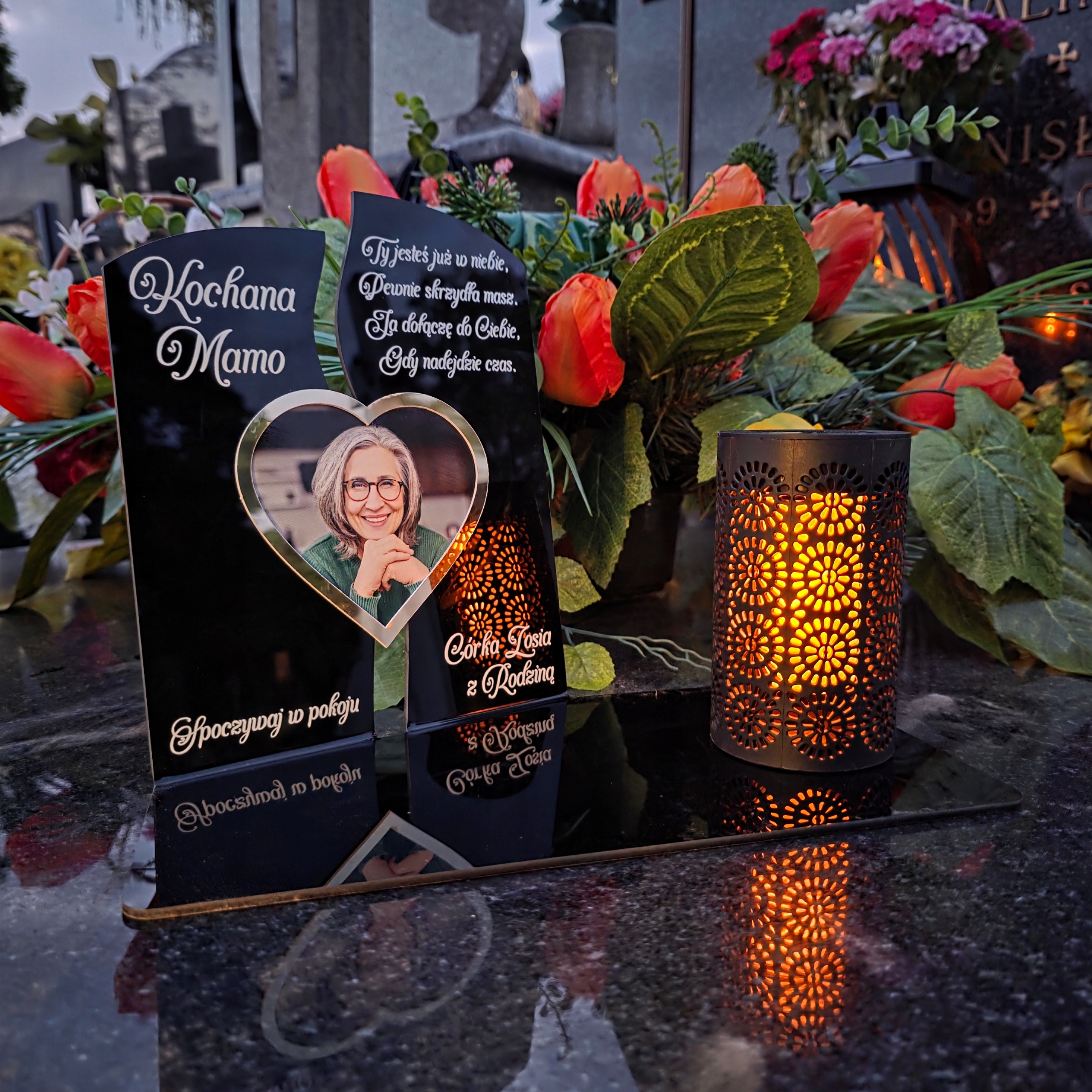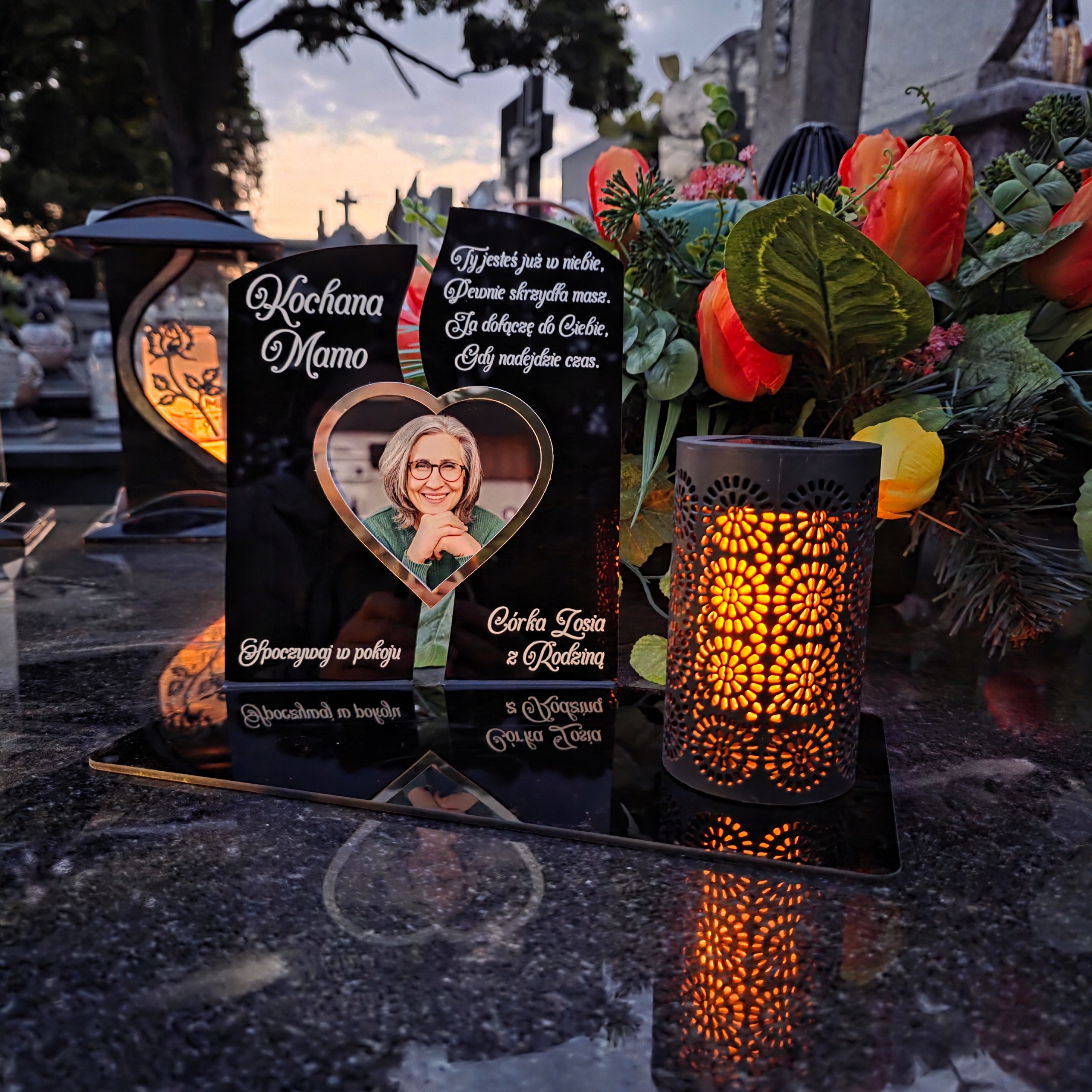 Статуэтка светодиодного светодиода Solar Solard с фотографией для могильного кладбища