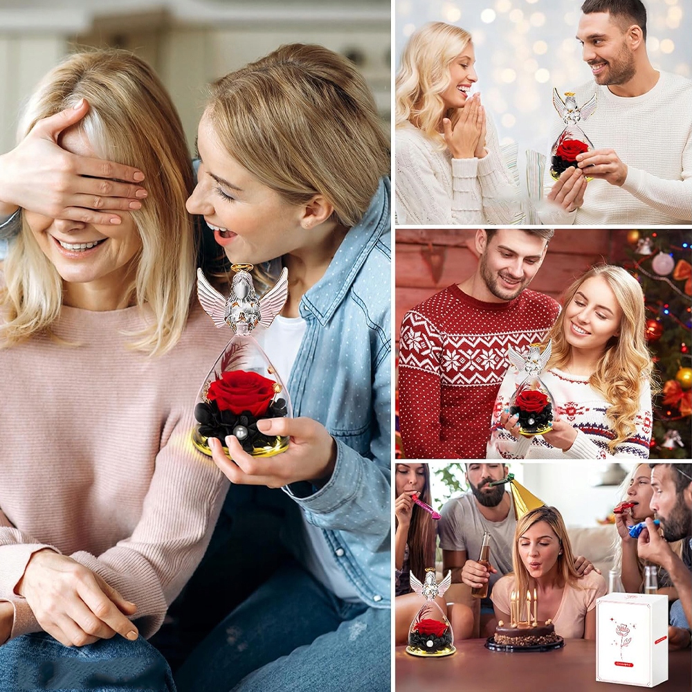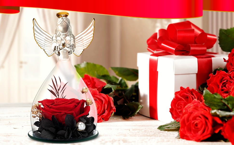 🌹 Красная роза обернута в статую стекла ангела, которая является изысканной, элегантной и очень декоративной. Энтузиазм, щедрость и страсть, благодаря которой они очень подходят в качестве подарков. Случаи.