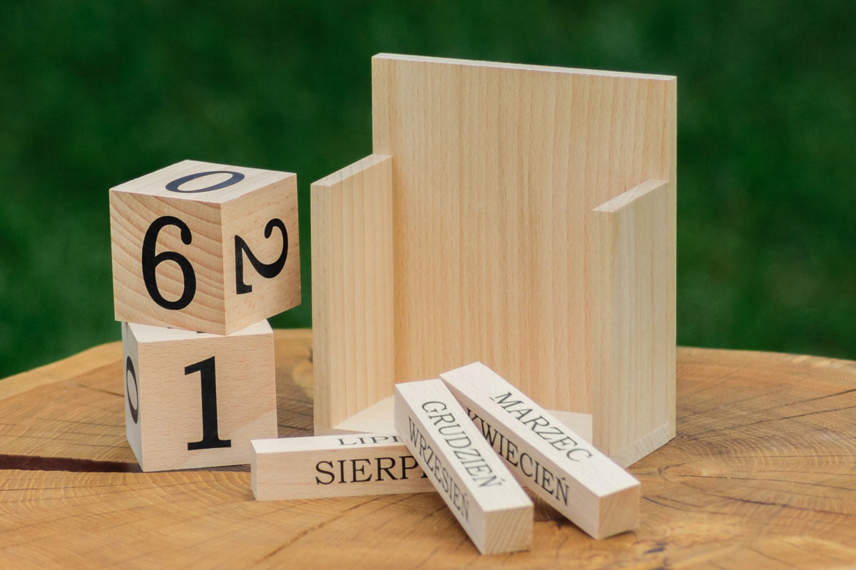 Настольный календарь деревянный в натуральном цвете - неокрашенный.