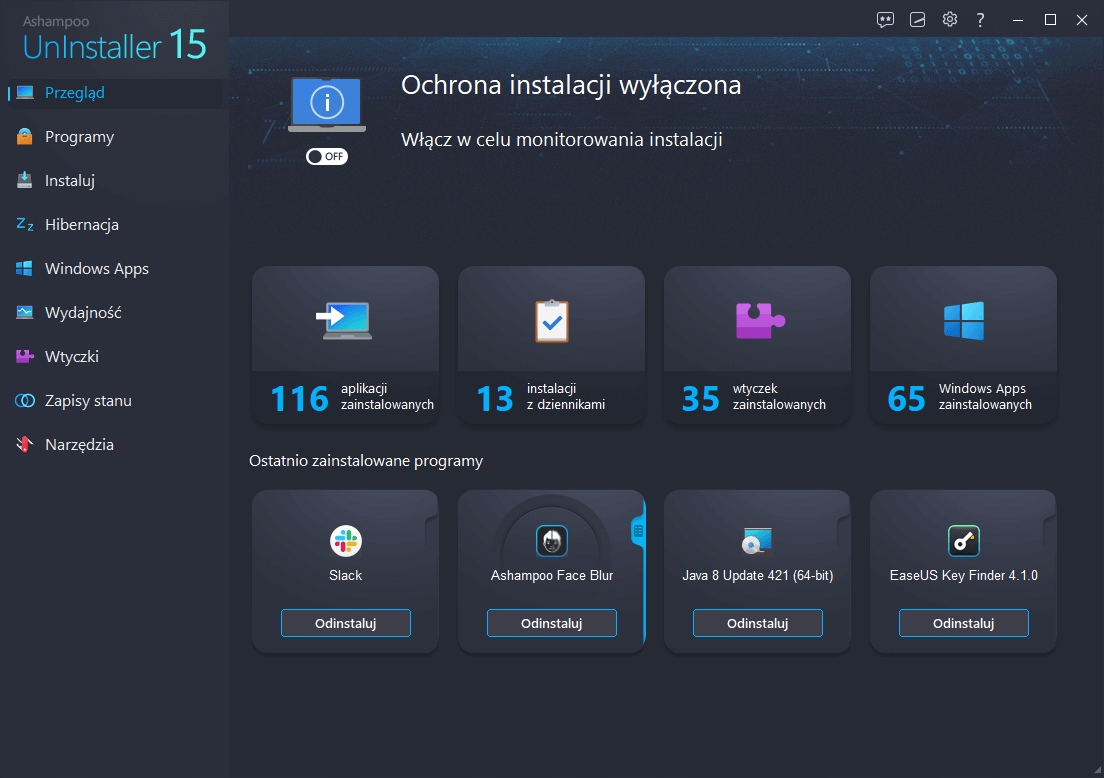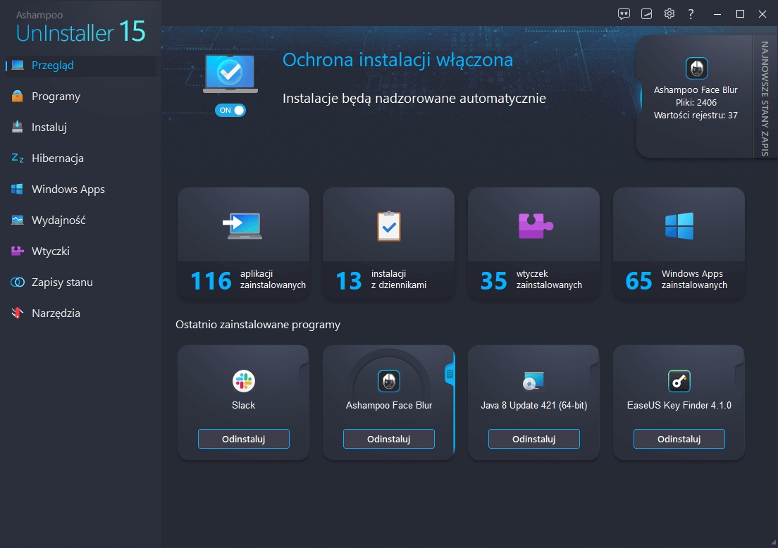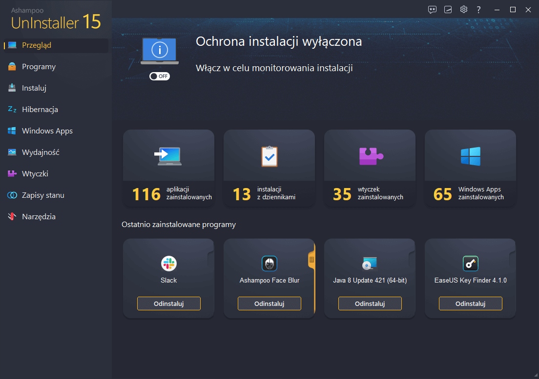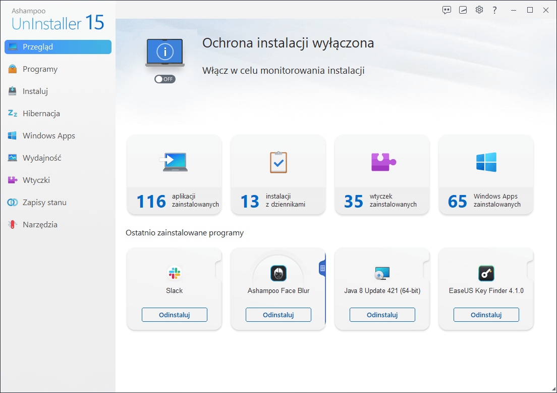 Благодаря новой фоновой защите в Ashampoo Uninstaller 15 анализ реального времени в 10 раз быстрее, чем раньше. Новая версия тщательно обнаруживает начало и конец установки и лучше поддерживает вложенные или редкие типы установки. Независимо от того, пробуете ли вы новые программы или обновляете свое любимое программное обеспечение, наша охрана гарантирует, что каждое изменение обнаружено немедленно. Испытайте большую производительность, точность и совместимость!