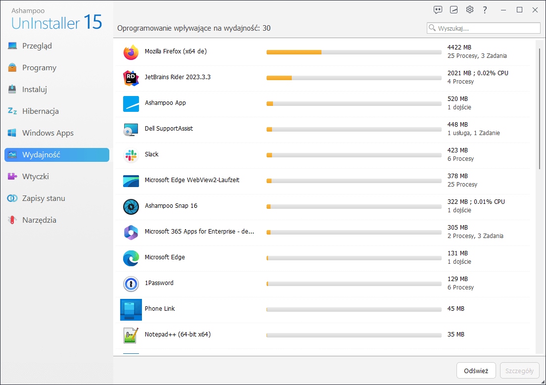 Ashampoo Унсталлера 15 теперь еще более эффективен! Благодаря значительному снижению потребления памяти и процессора, ваша система работает более плавнее, и вы используете оптимизированное создание и обработку дневников. Даже в случае старых или более слабых систем анализ реального времени теперь прост! Ускоренное сравнение затвора позволяет мгновенно отслеживать изменения между двумя состояниями