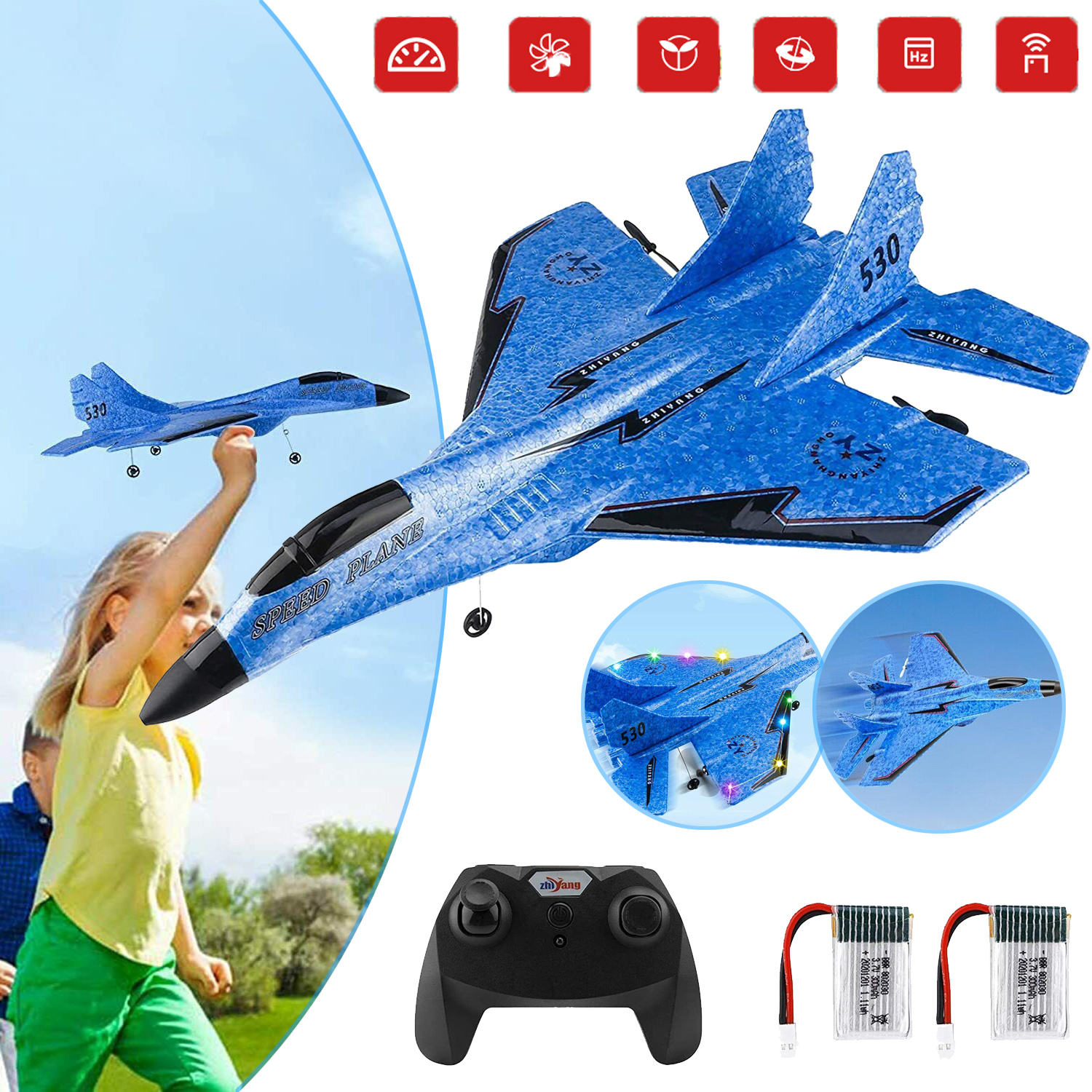 ✈ 【【длительное время полета】 Этот удаленный -контролируемый самолет оснащен двумя заменяемыми литийными батареями 3,7 В 300 мАч , которые можно заряжать, обеспечивает более длительное время воспроизведения. Время полета превышает 30 минут , а время зарядки аккумулятора составляет около 40 минут.
